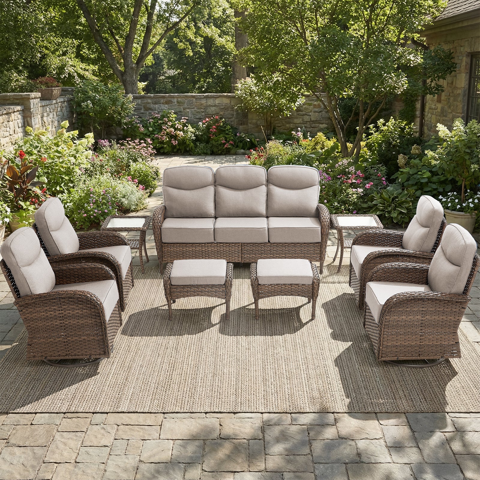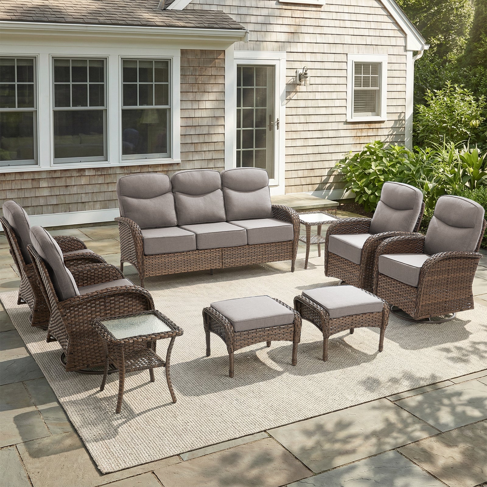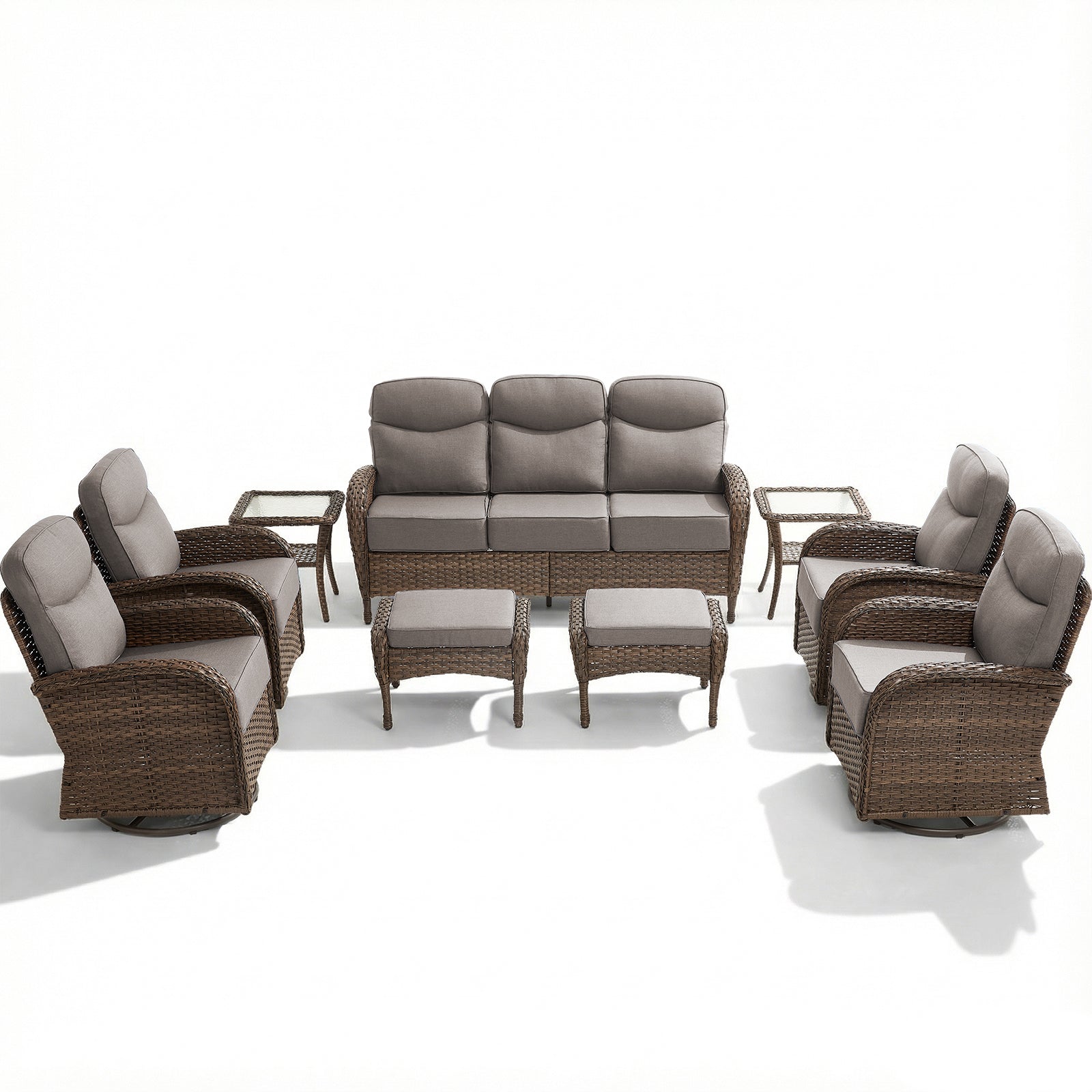 9-Piece Outdoor Conversation Set – Heavy-Duty Swivel Rockers, Waterproof Wicker for Large Deck Spaces, ND Series