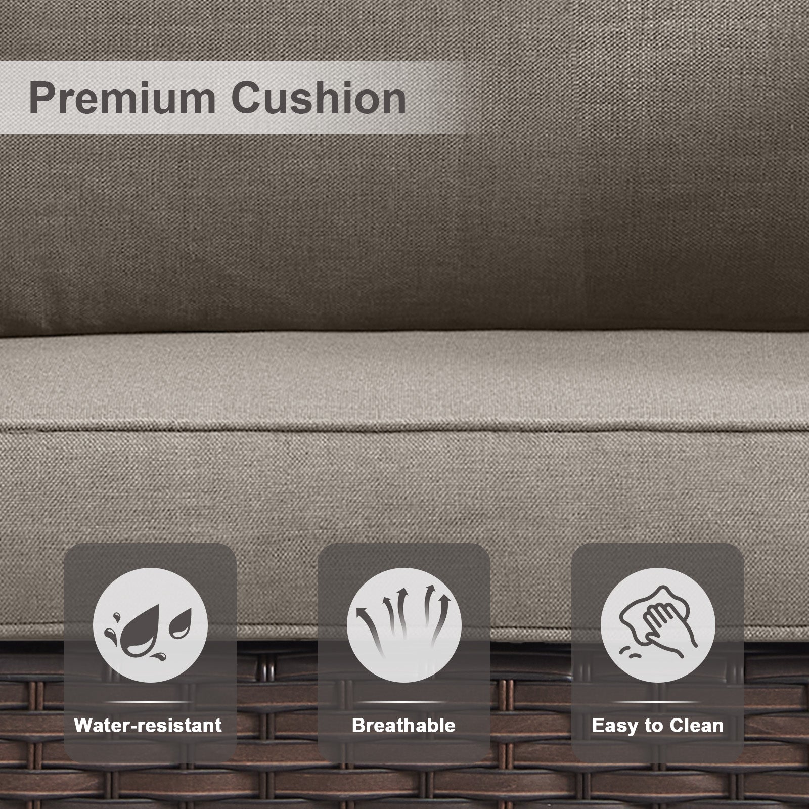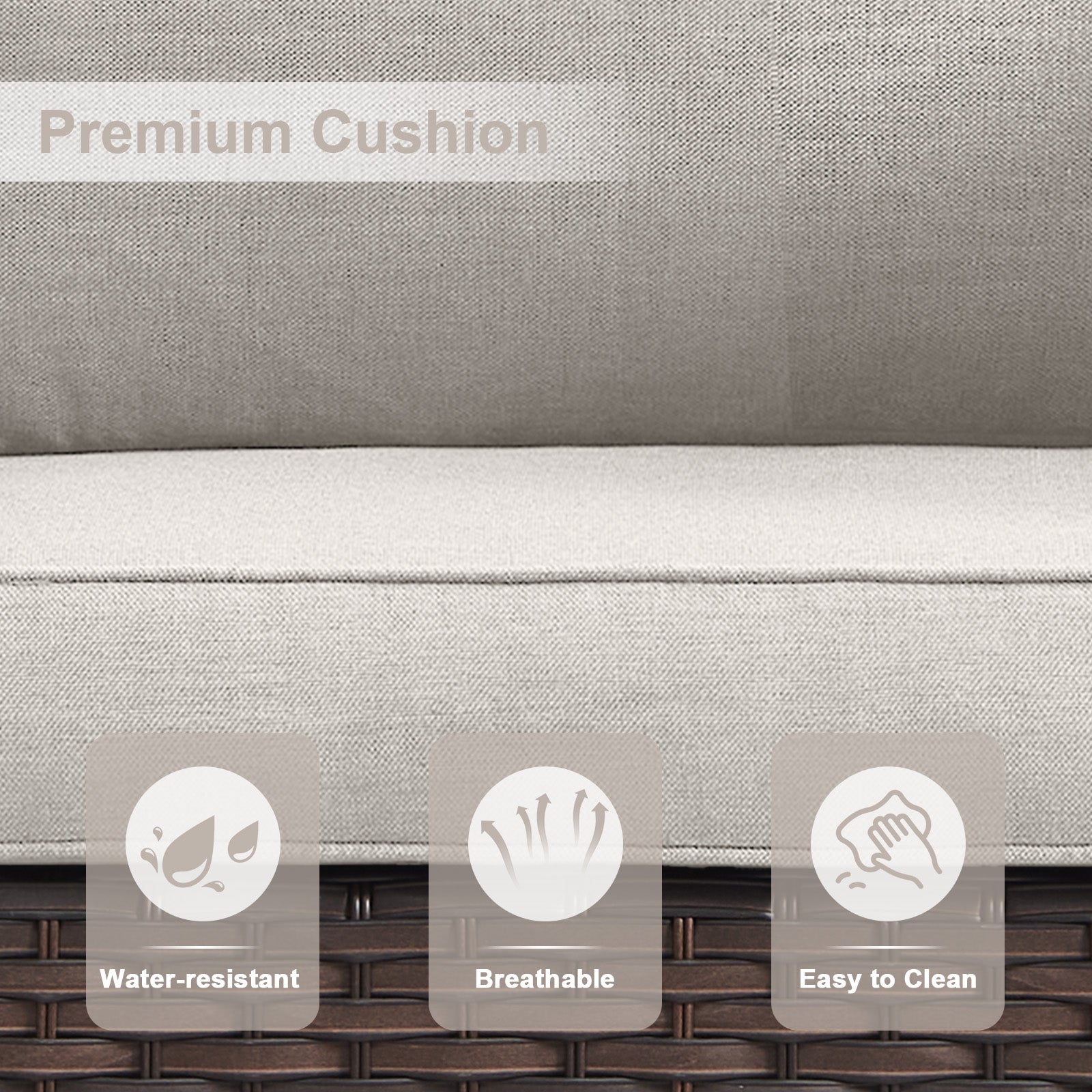 Comfortable 3.5" Thick Cushions: Deep and wide seats with sponge-padded cushions offer excellent resilience and lumbar support. Water-repellent polyester covers with zippers are removable for easy cleaning and maintenance.