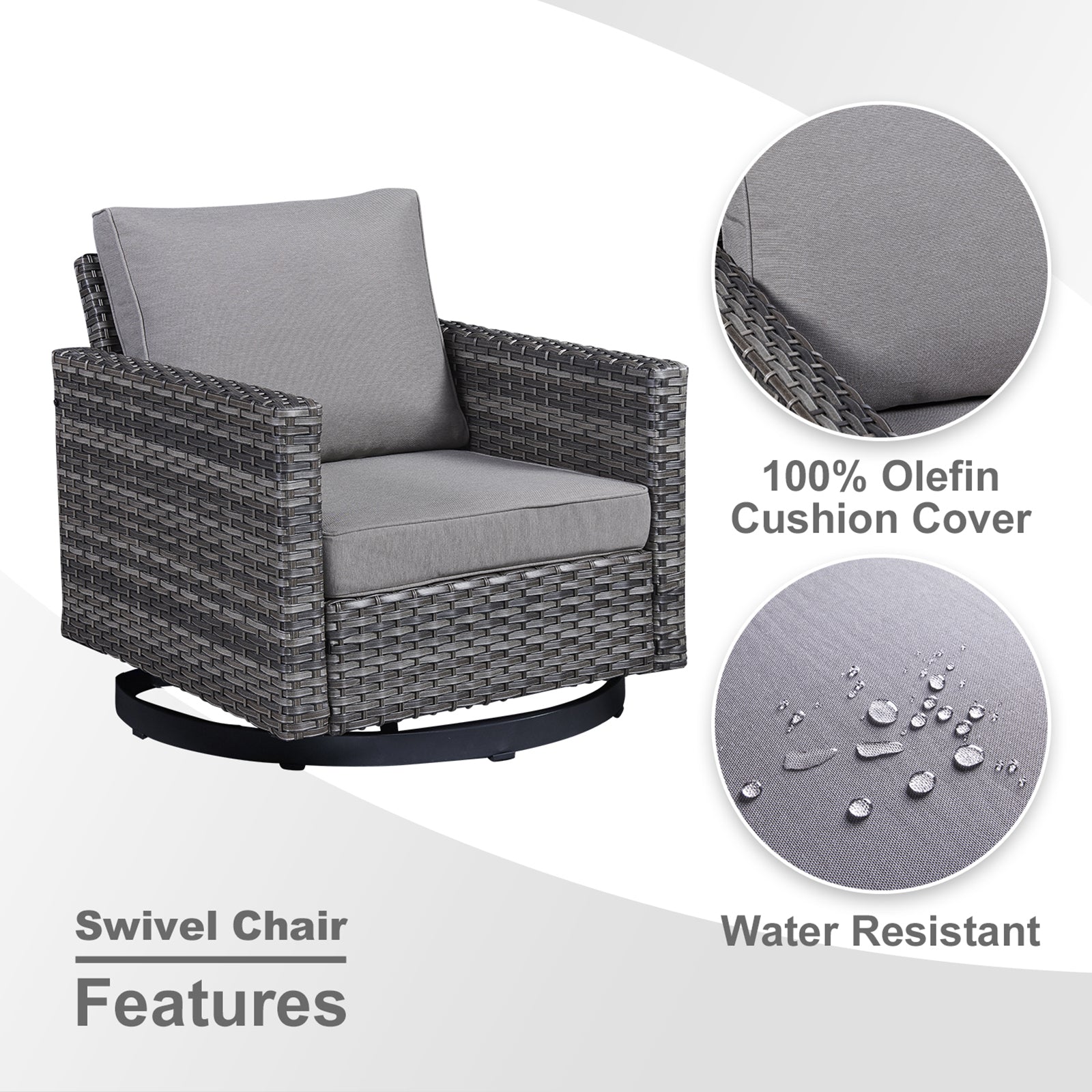 Modern & Stylish Design: Grey wicker finish and clean lines blend seamlessly with a variety of outdoor décor styles, enhancing patios, gardens, and backyards.