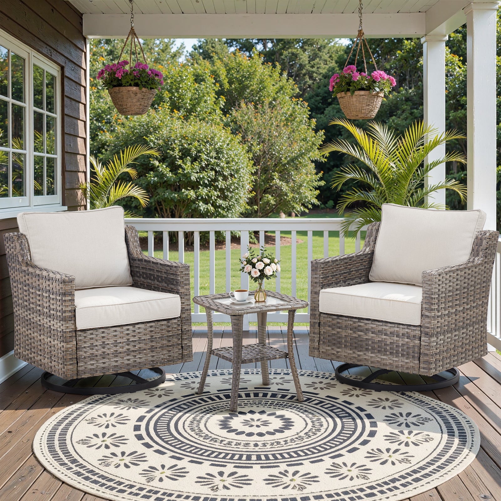 3-Piece Patio Furniture Set: Includes 2 high-back swivel chairs and 1 tempered glass coffee table. Flexible layout adapts easily to different outdoor spaces.