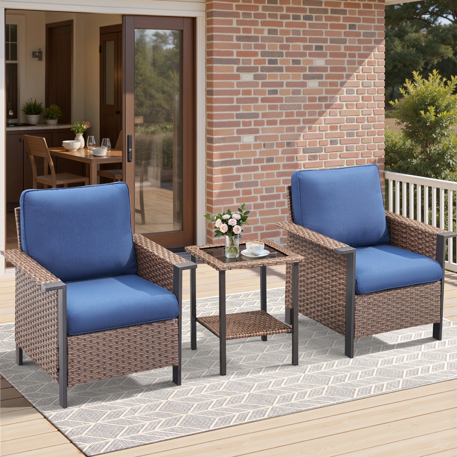 Patio Chairs & Side Table: PE Wicker & Steel Frame