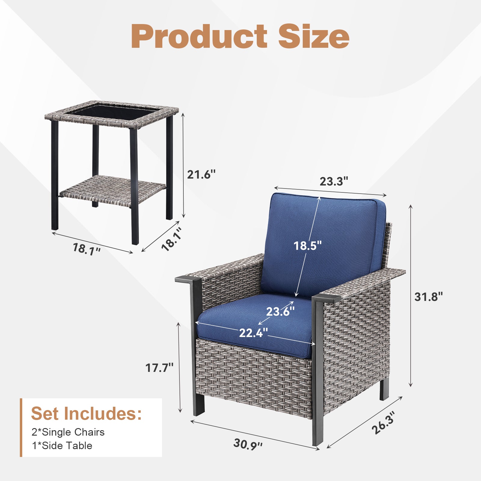 Patio Chairs: 31.8"H x 30.9"W x 26.3"D