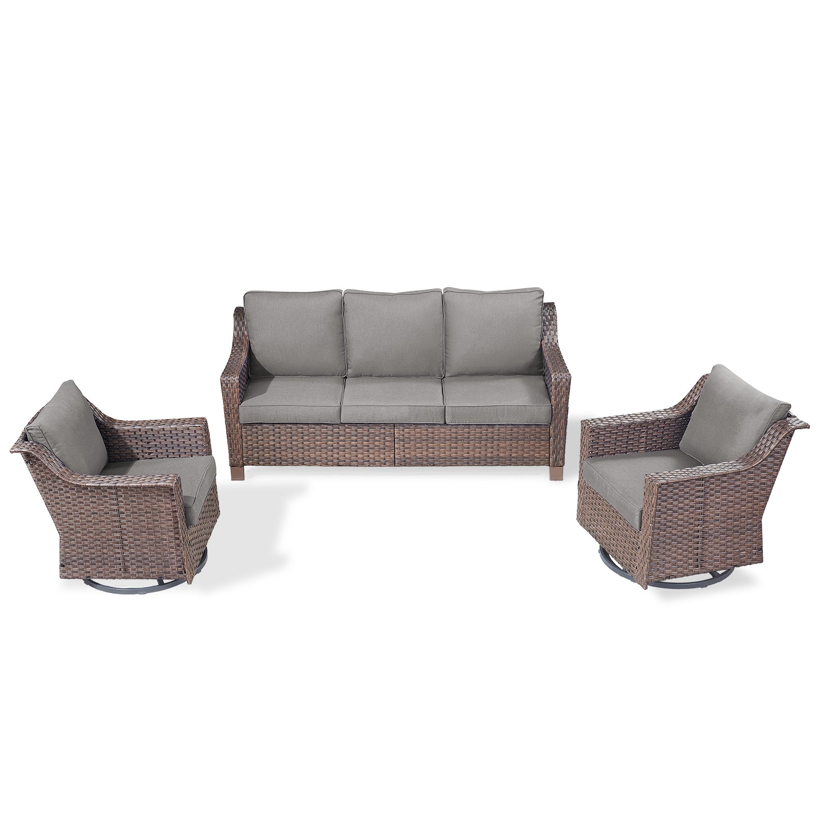 3PC Patio Conversation Set with 3-Seat Sofa & 2 Swivel Rocker Chairs, DAR Series