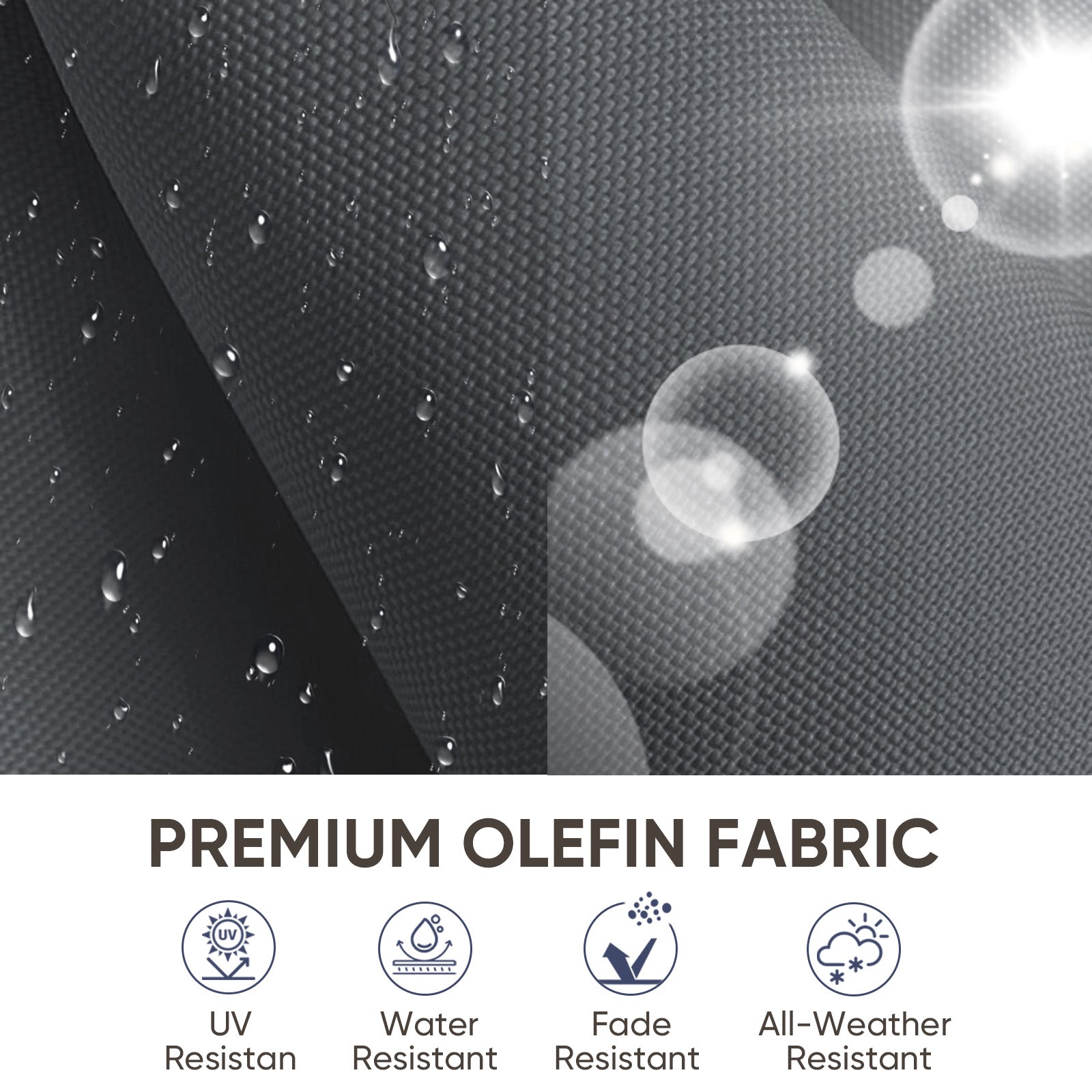 2. Premium Olefin Fabric: Water-repellent, UV-resistant, and breathable, the cushion covers offer a soft touch similar to cotton and linen, perfect for outdoor use.