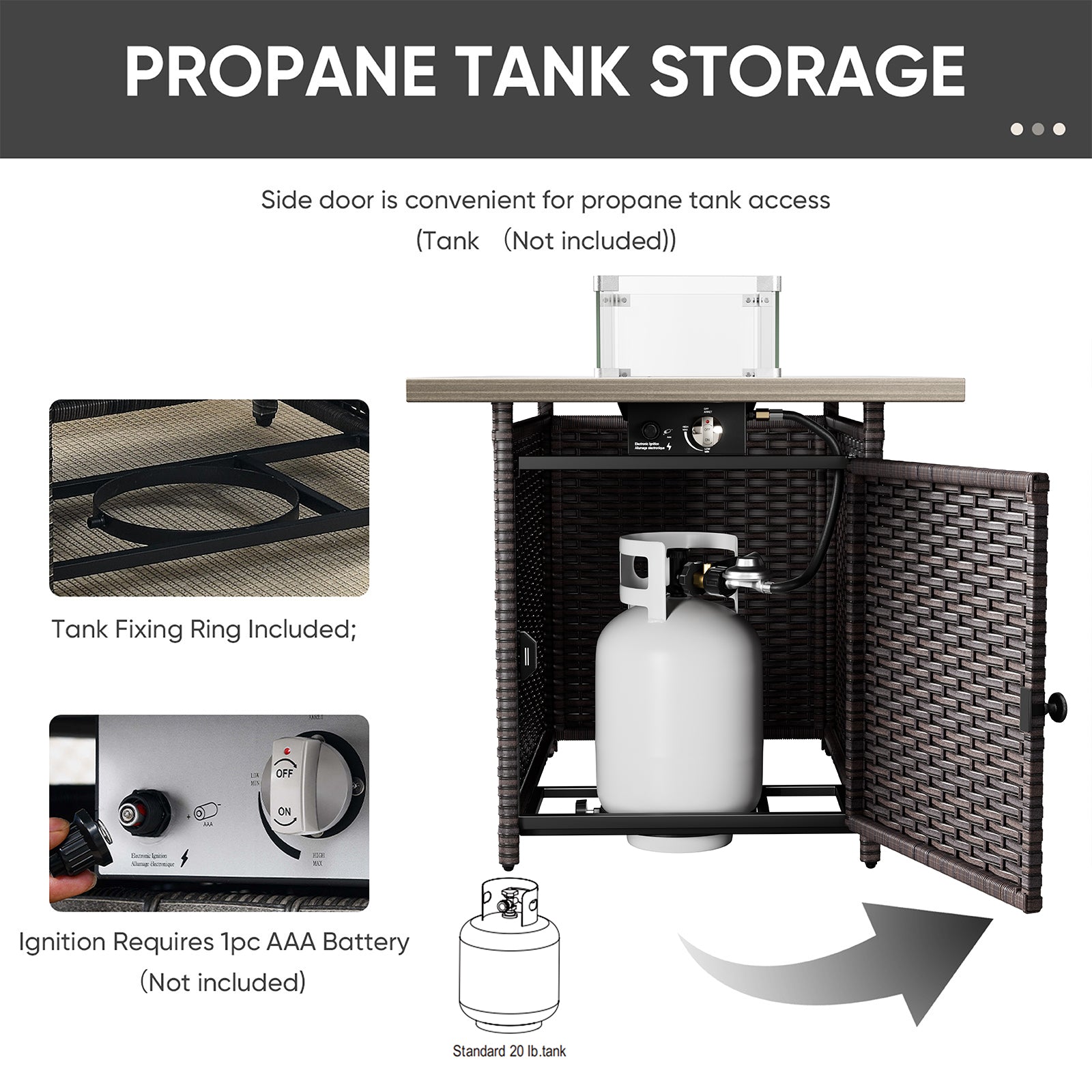 Fire Pit Table: 26"H x 31"W x 19.3"D