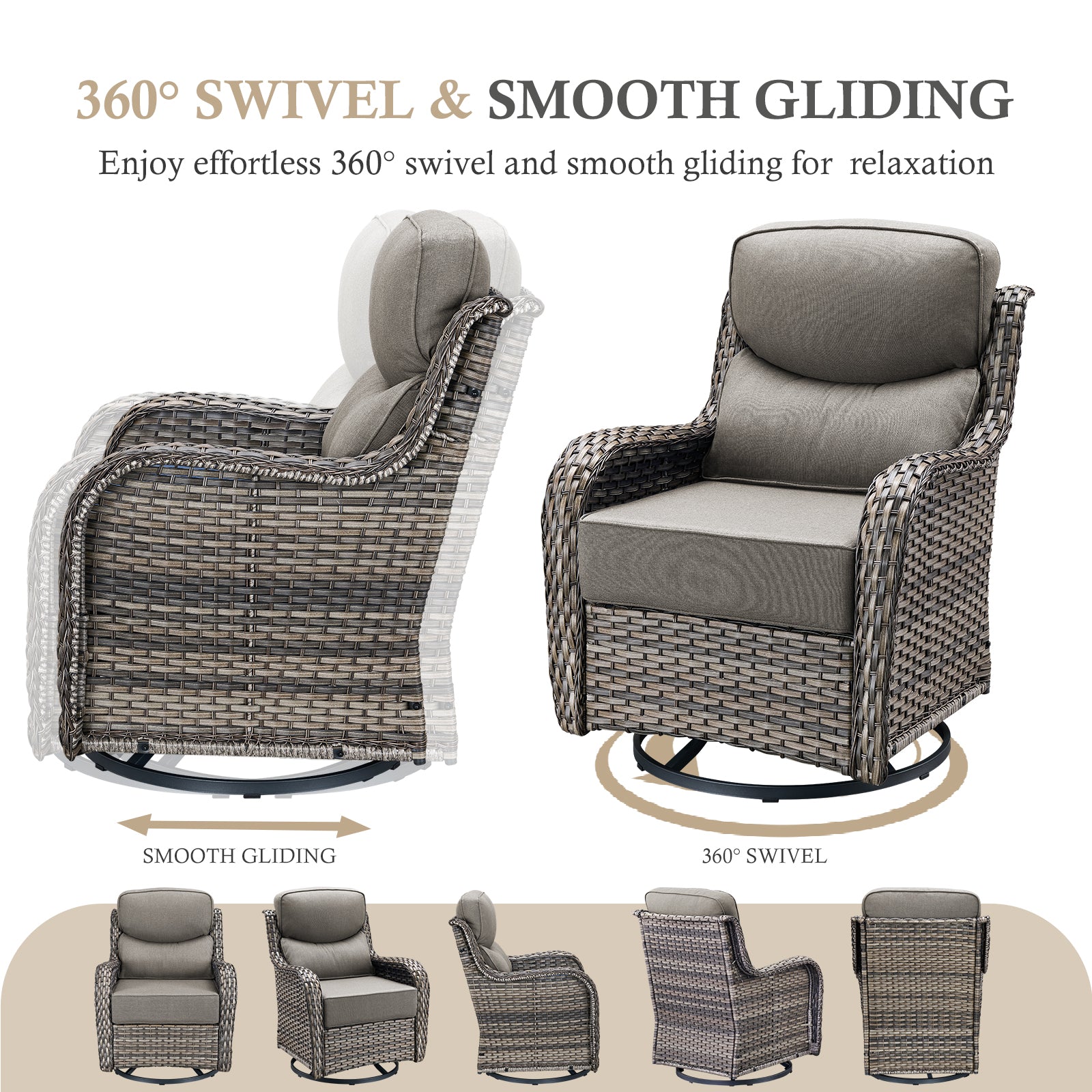 3-Seat Sofa & Swivel Glider Chair: PE Wicker & Steel Frame