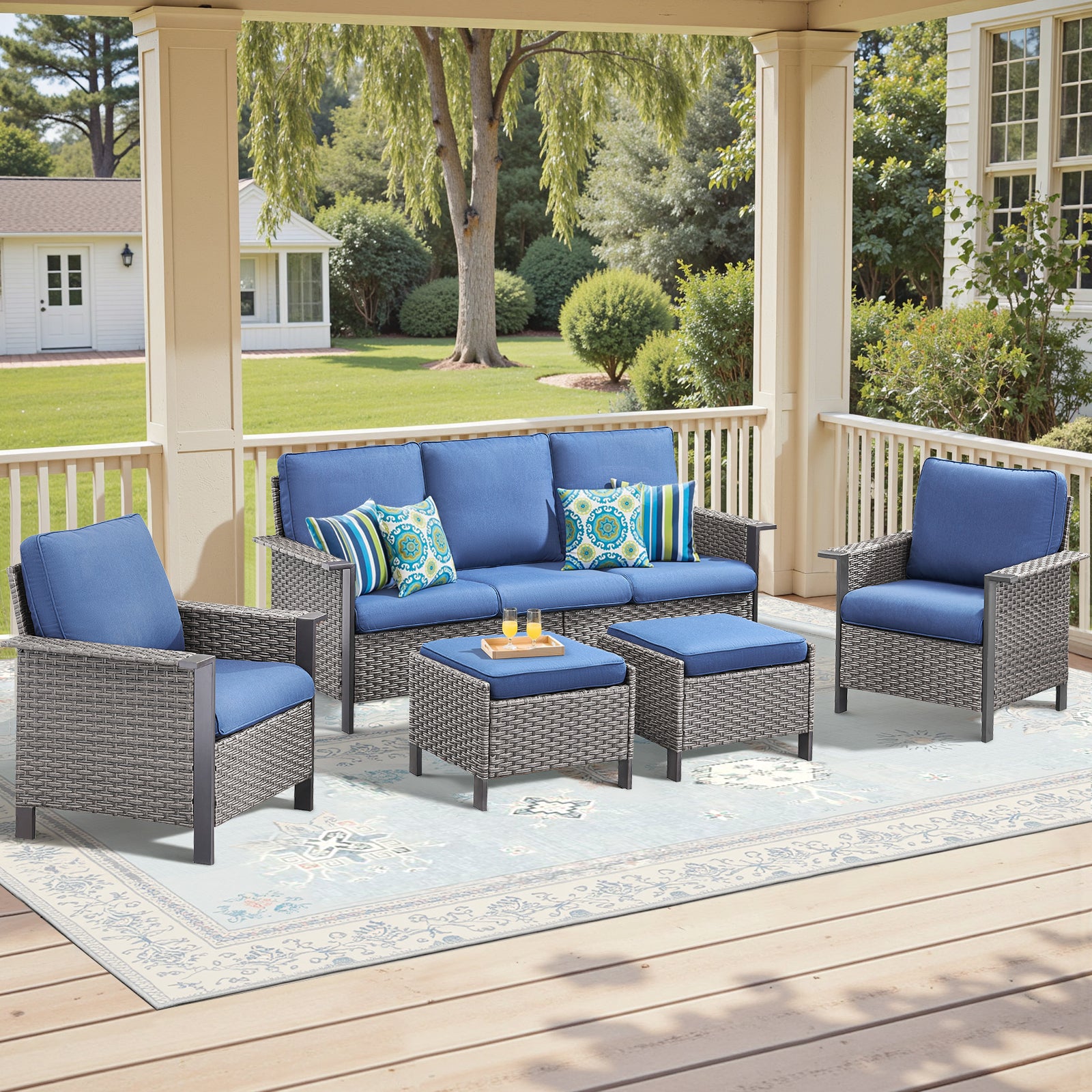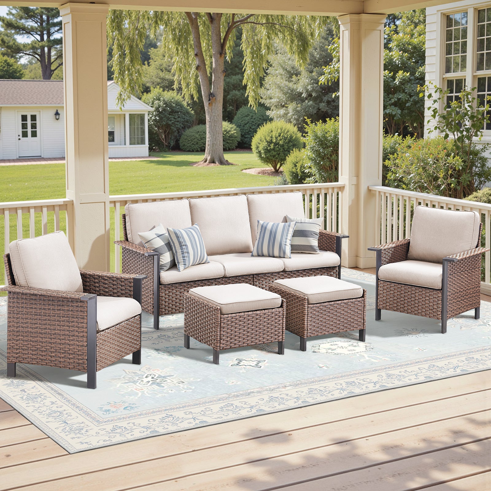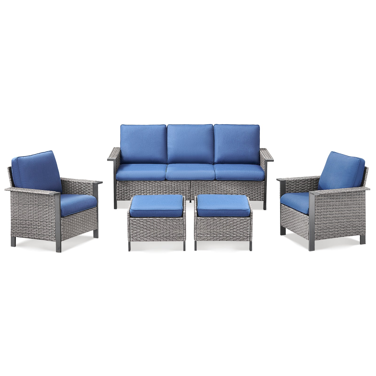 5-Piece All-Weather PE Wicker Conversation Set — Includes 1 Sofa, 2 Patio Chairs & 2 Ottomans with Cushions, WNG Series