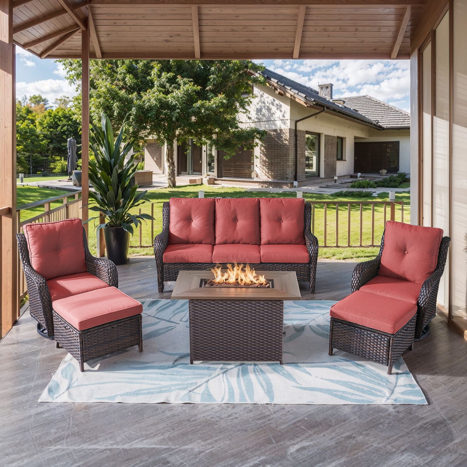 6-Piece Outdoor Rectangular Fire Pit Table Set with 33-Seat Sofa, Swivel Chairs & Footrests, NTC Series