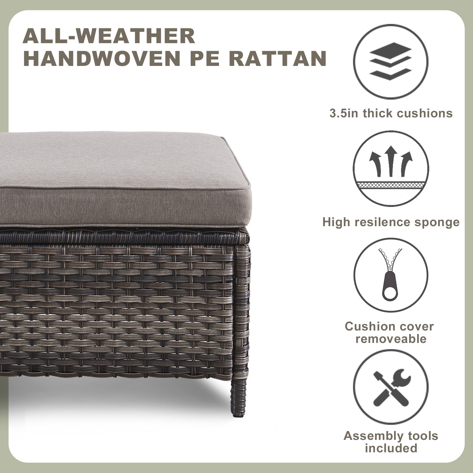 Built with a sturdy powder-coated steel frame and hand-woven, weather-resistant wicker, this set is designed to withstand sun, rain, and seasonal changes for long-lasting outdoor performance.