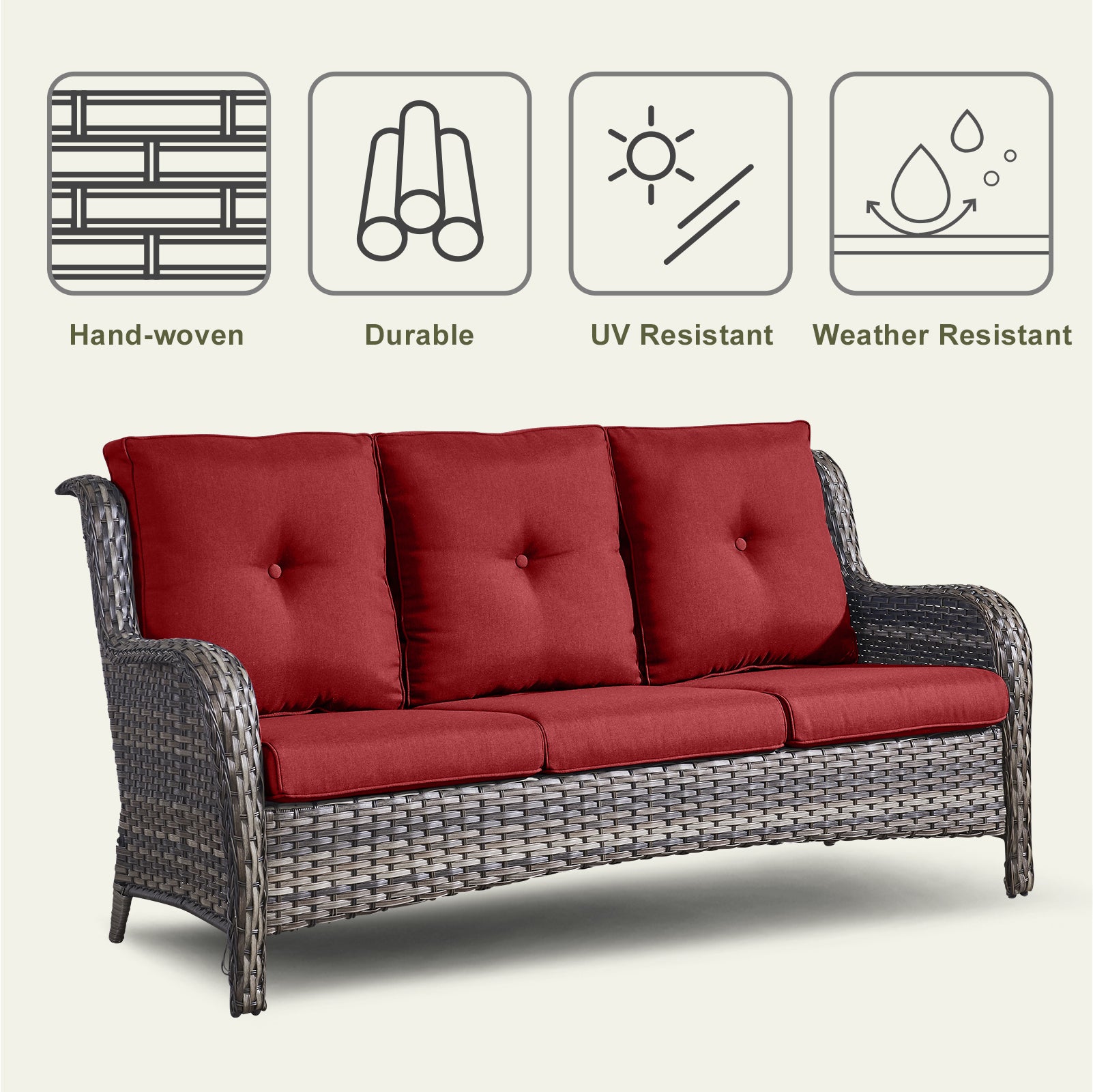 3-Seat Sofa & Swivel Glider Chair & Ottoman: PE Wicker & Steel Frame