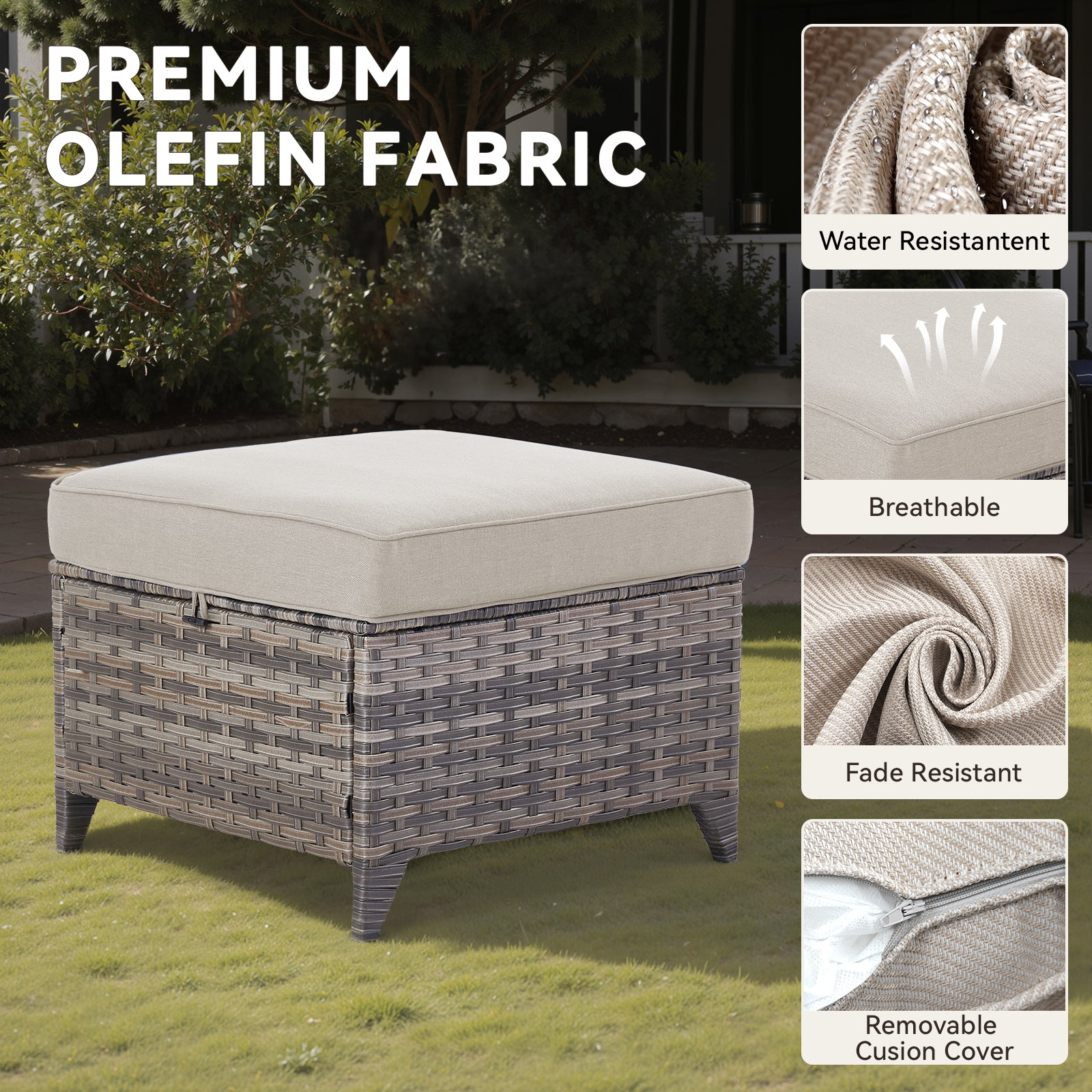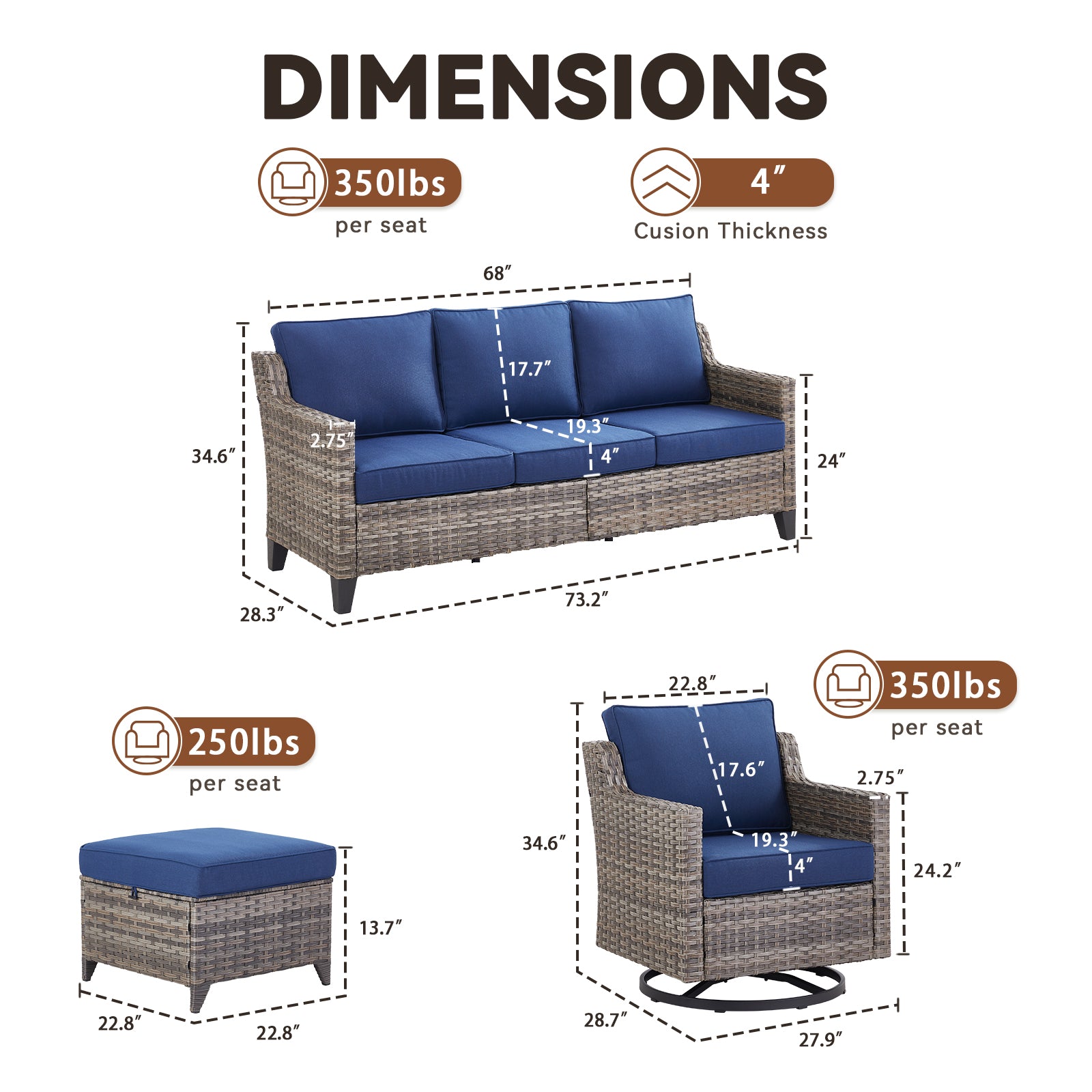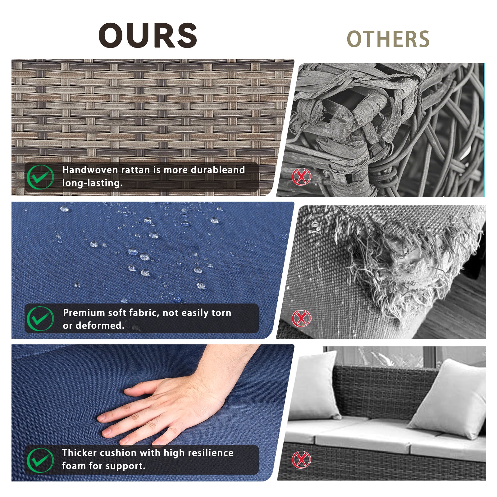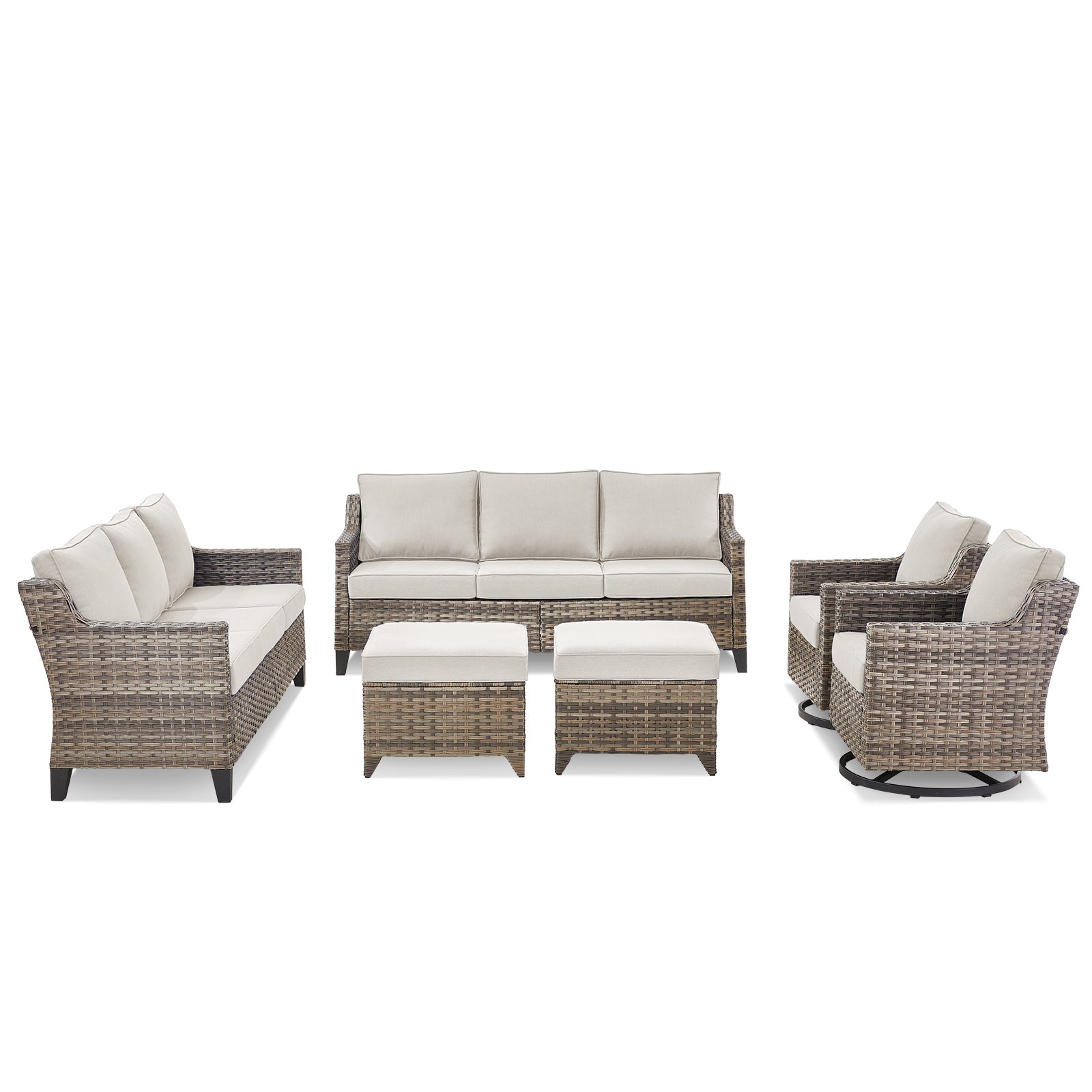 6-Piece Outdoor Furniture Set: Includes 2 hand-woven wicker sofas, 2 high-back swivel chairs, and 2 ottomans. Modular design allows you to create customized seating arrangements.