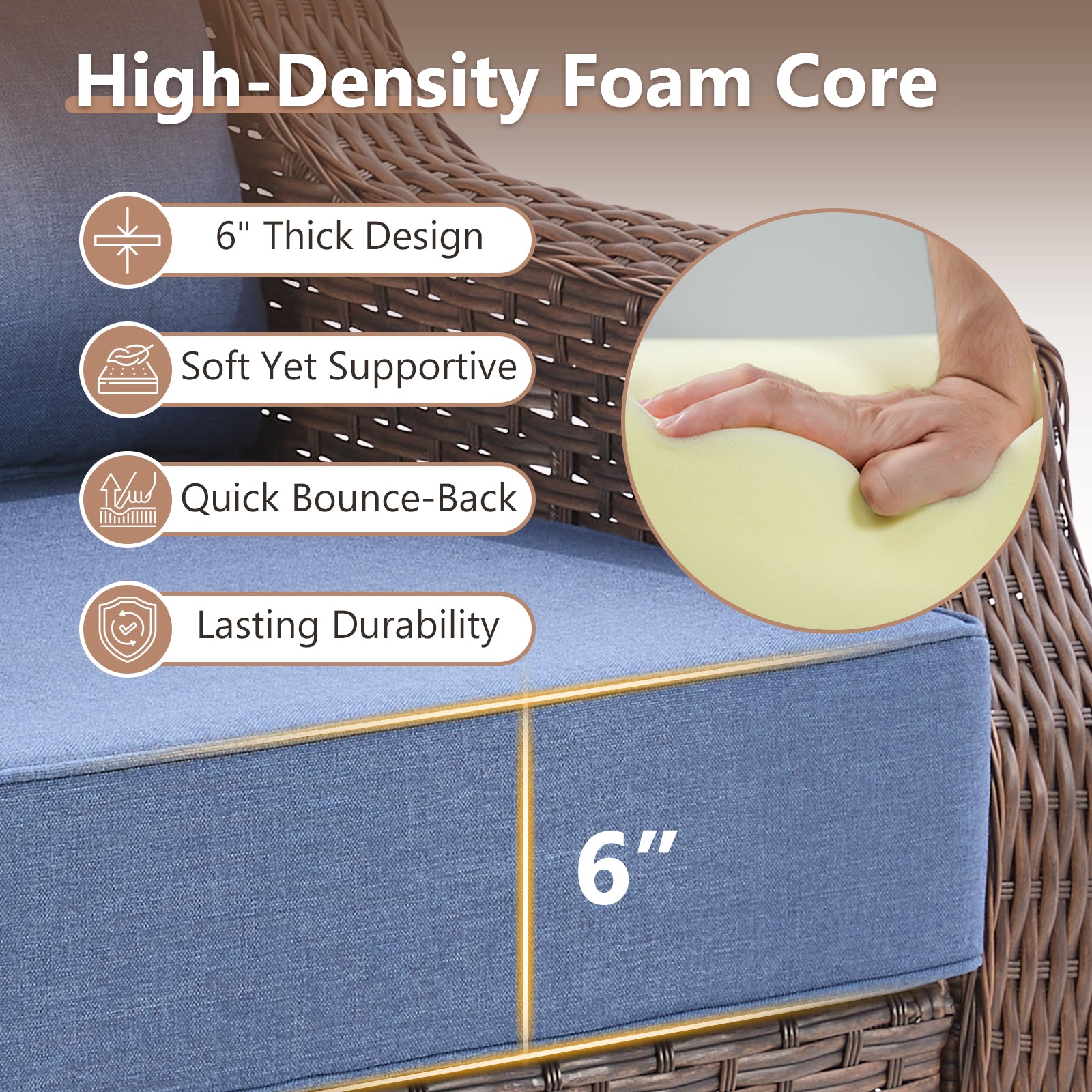 - Deep Seating with 6'' Thick Cushions – Plush, waterproof cushions provide cloud-like comfort while maintaining shape over time.