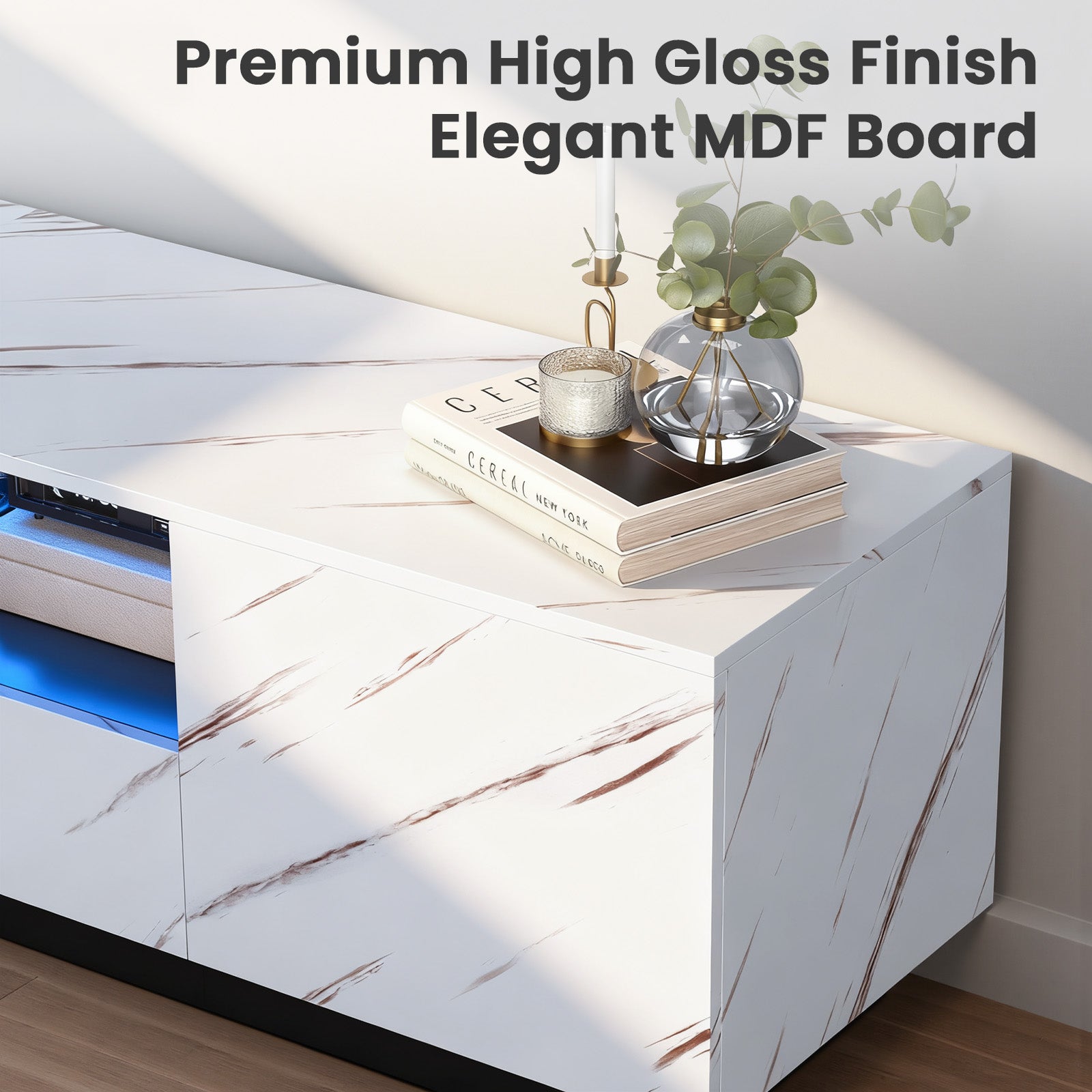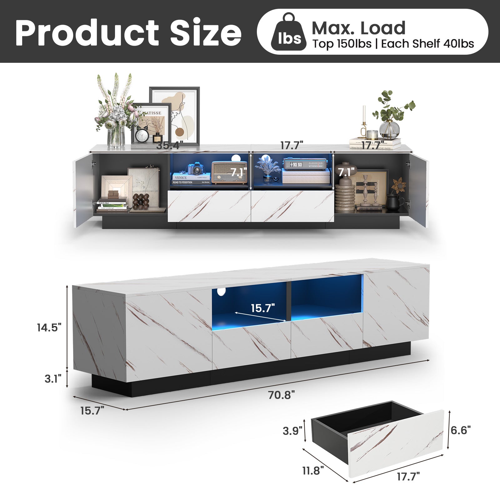Save 50% - 71" Modern TV Stand | Featuring a Luxe Marble Top, Ambient LED Lighting & Ample Storage