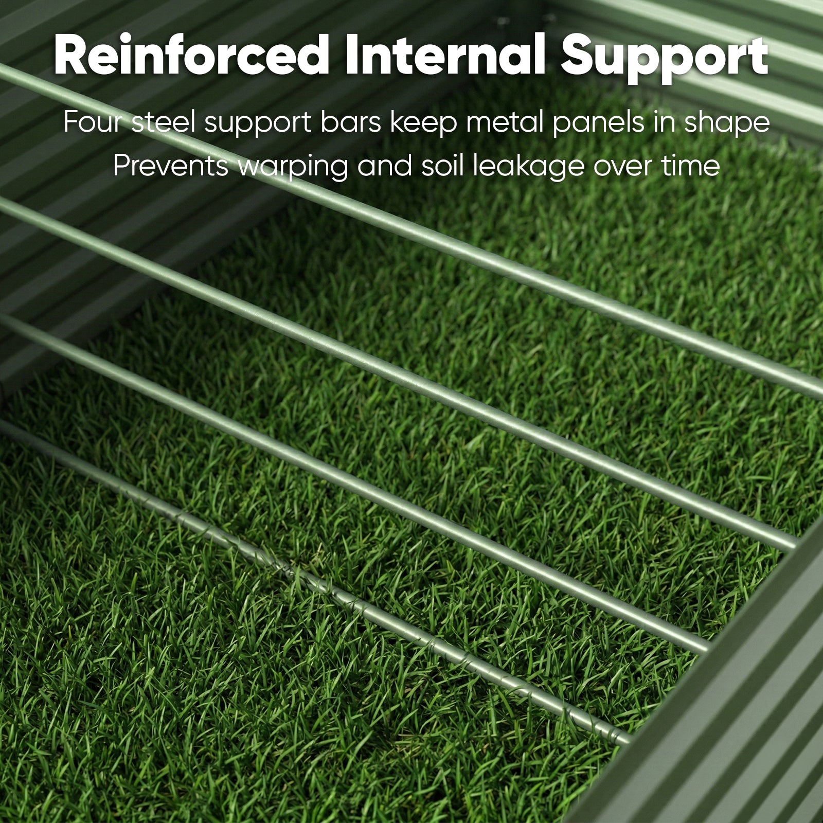 Metal surface helps reflect excess heat, promoting cooler soil conditions and balanced moisture retention. - Reinforced Structural Support