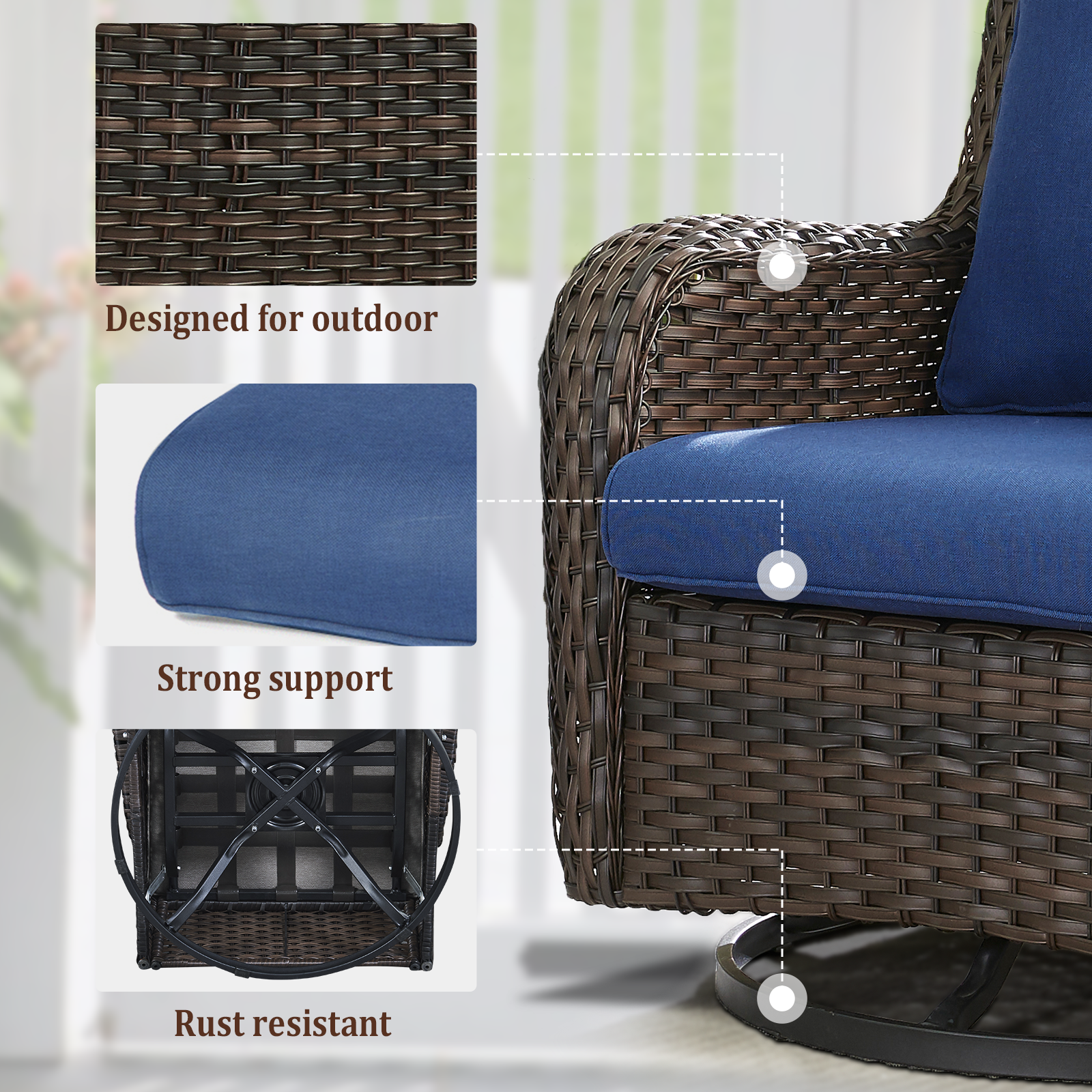 Patio swivel chairs offer smooth 360° rotation combined with a gentle rocking motion, allowing you to relax comfortably without moving the chair.