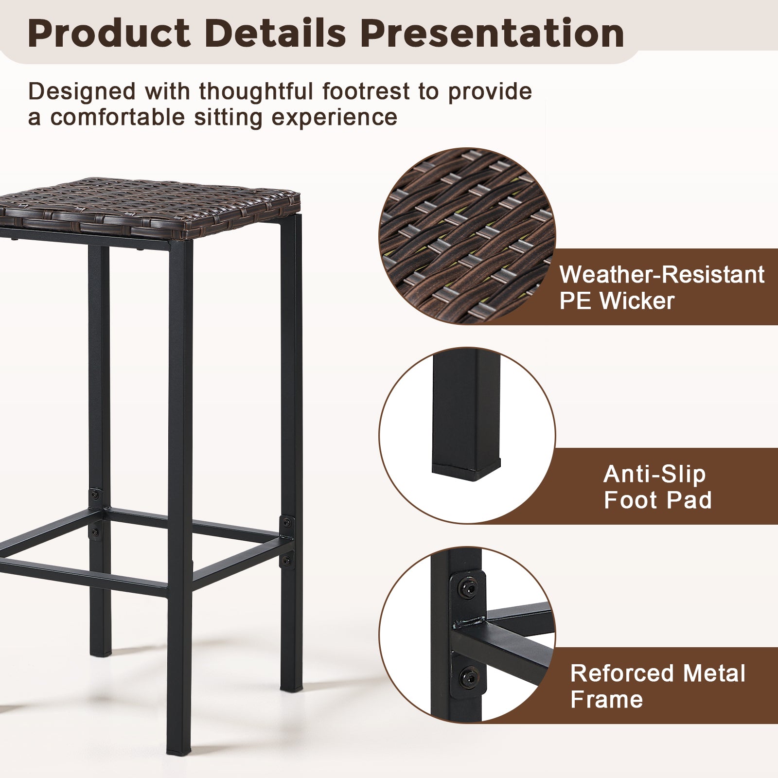 Engineered for long-lasting outdoor performance, this wicker bar set features handwoven PE wicker tested for over 2000 hours of UV exposure, resisting fading, cracking, and weather damage. The tear-resistant wicker is paired with a heavy-duty steel frame treated with a triple anti-rust process—pickling & phosphating, electrocoating, and powder coating—ensuring superior corrosion resistance and year-round durability.