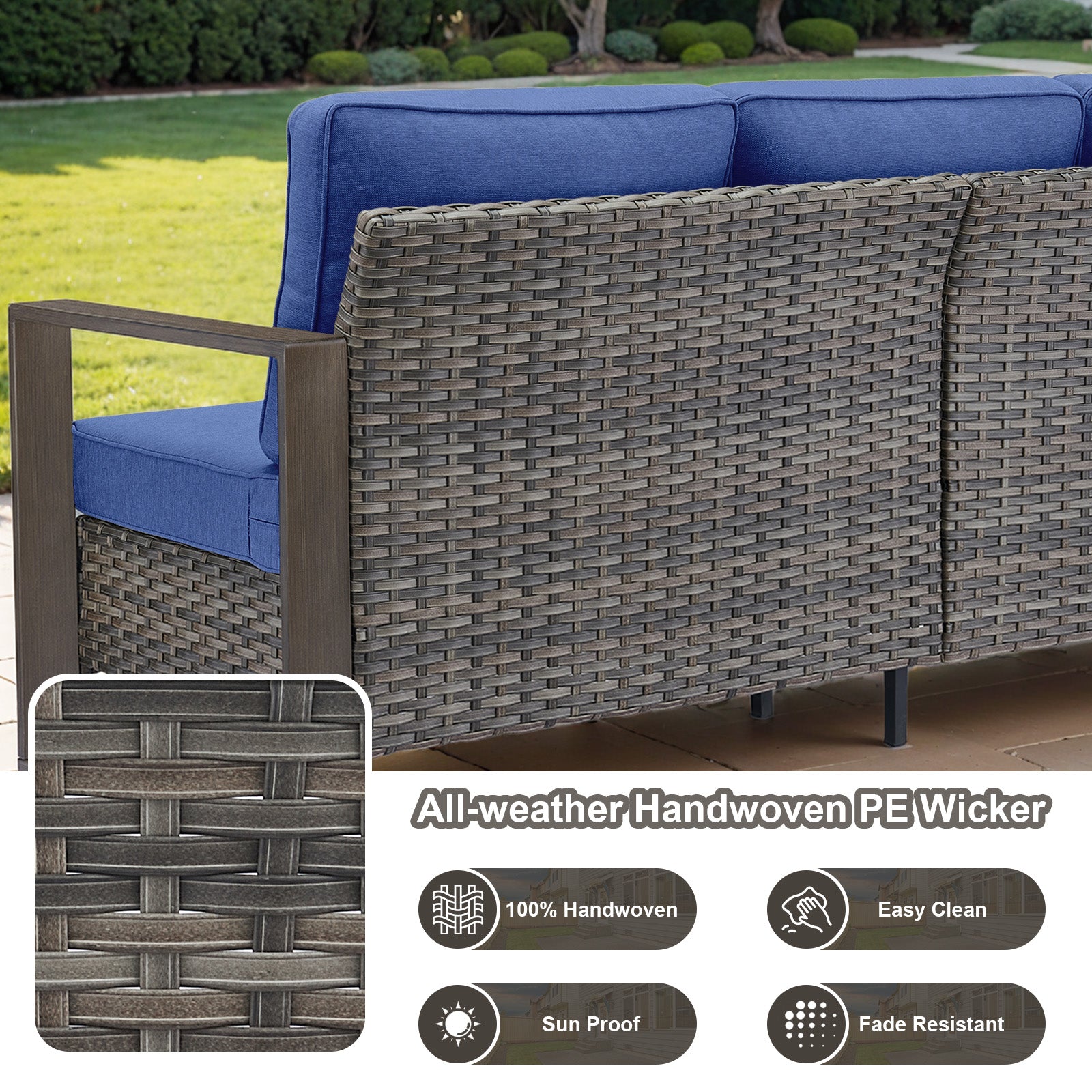 2. Weather-Resistant Build: Constructed with premium water-resistant PE wicker and a rust-resistant powder-coated frame to withstand sun, rain, and humidity.