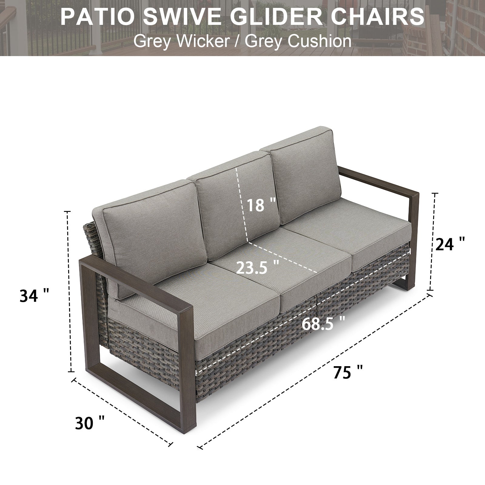 1. Spacious 3-Seater Design: Measuring 75"W x 30"D x 34"H, this large wicker sofa comfortably seats three adults and supports up to 800 lbs—perfect for lounging with family or friends.