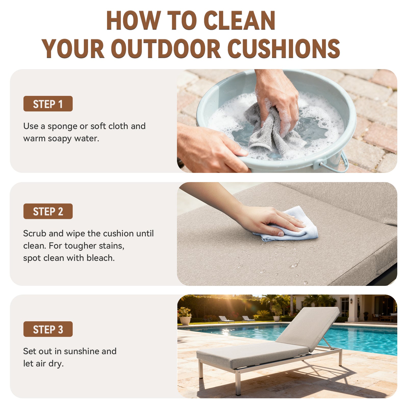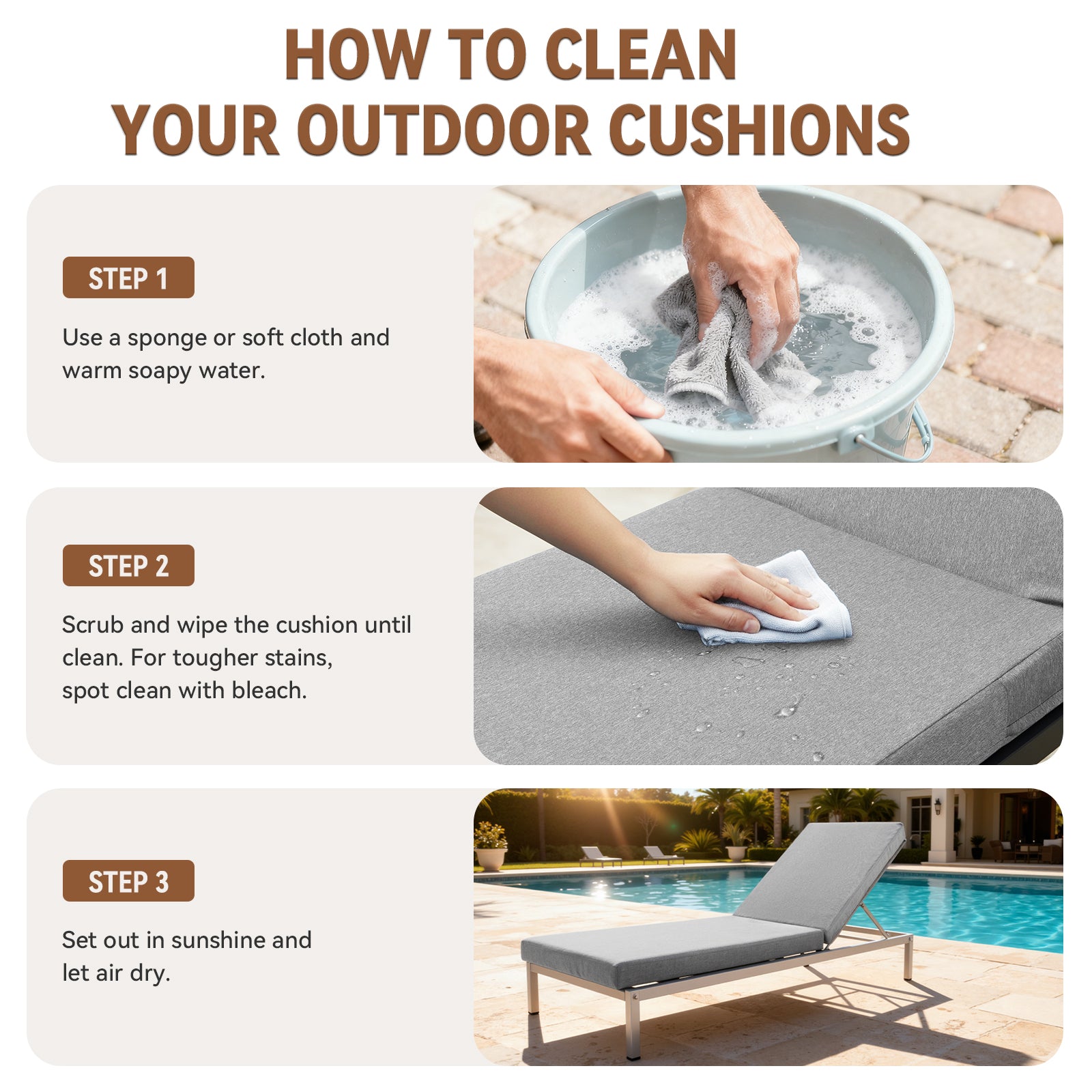Cushion Durability: Water Resistant; UV Resistant