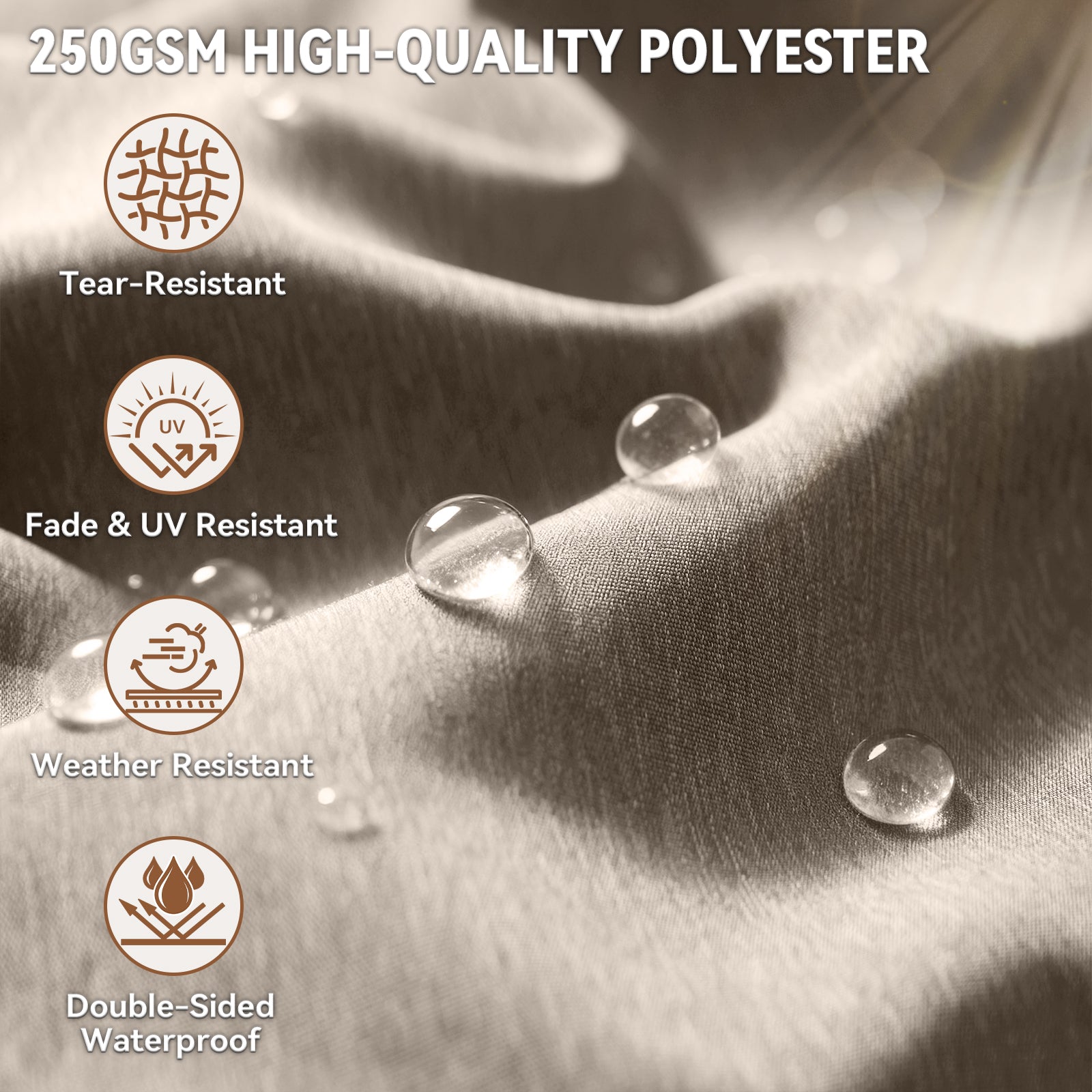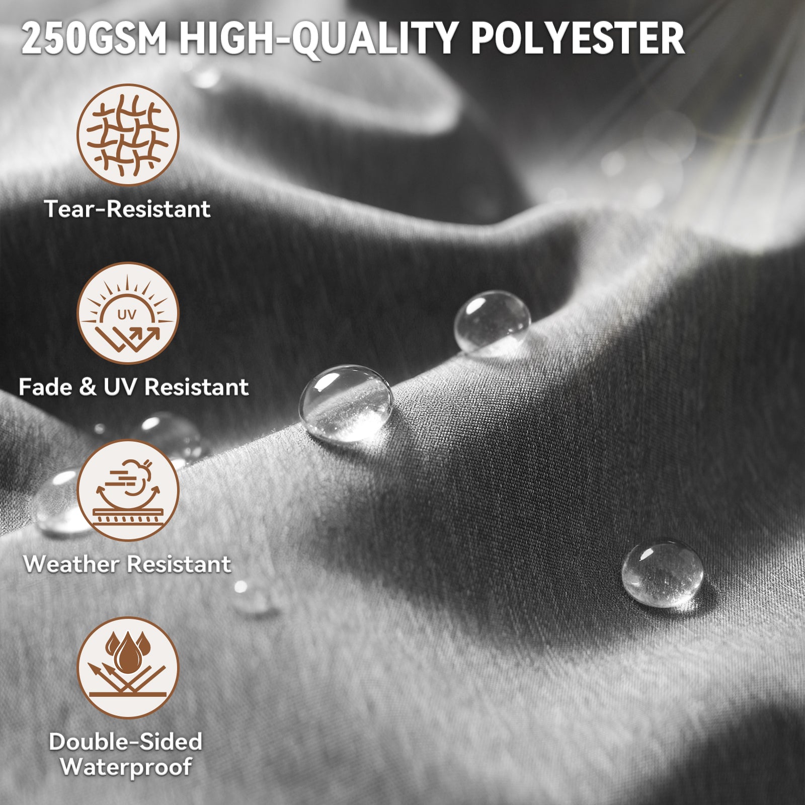 Professional Outdoor Polyester Fabric – 100% polyester, UV-resistant, fade-resistant (1,000+ hours of sun exposure), double water-proof, quick-drying, and skin-friendly for maximum comfort.