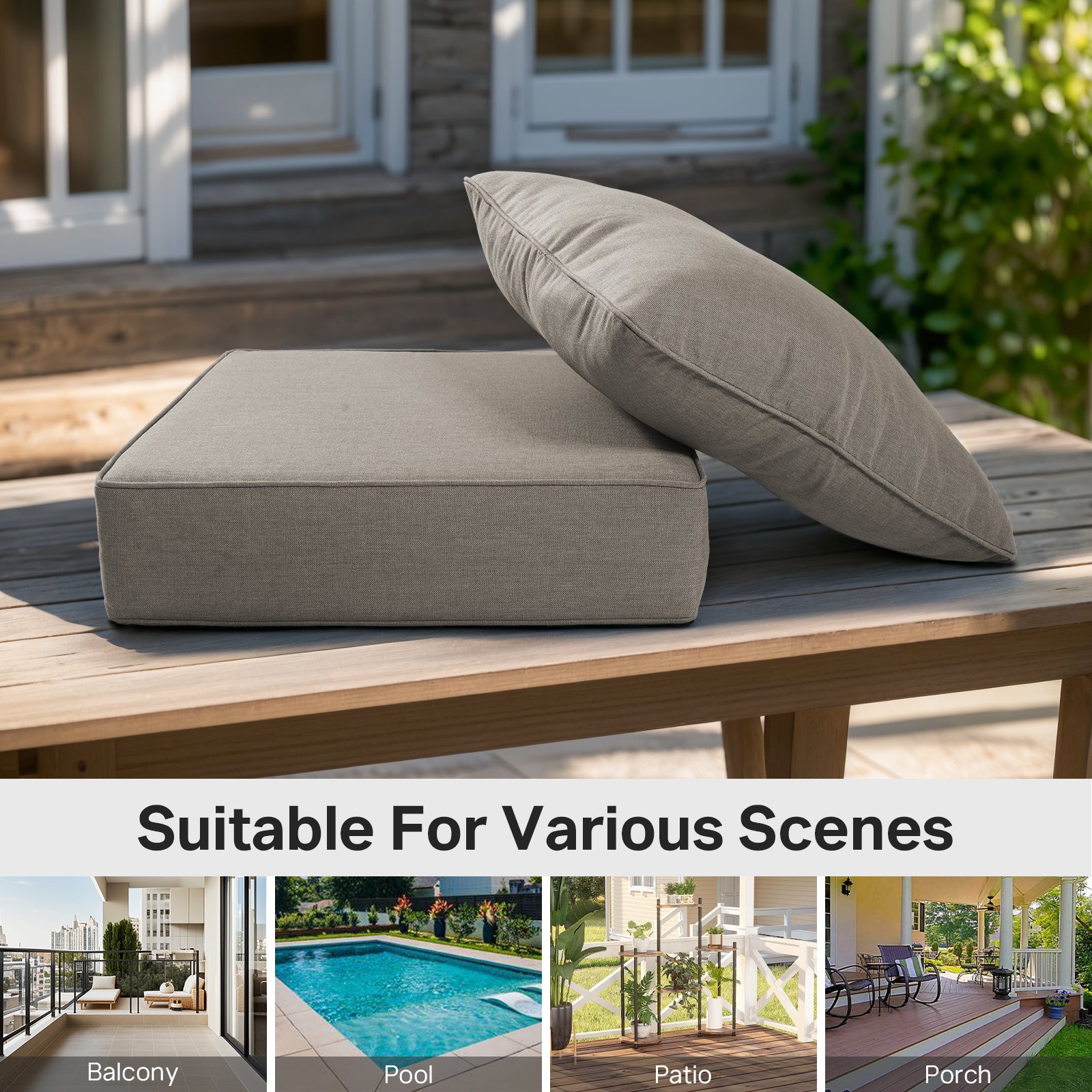 1. Perfect Fit for Standard Seating: Designed at 22" x 24" x 6" (WxDxH) to fit most standard-depth patio chairs, loveseats, and sectionals. Please measure your furniture to ensure a snug, precise fit.