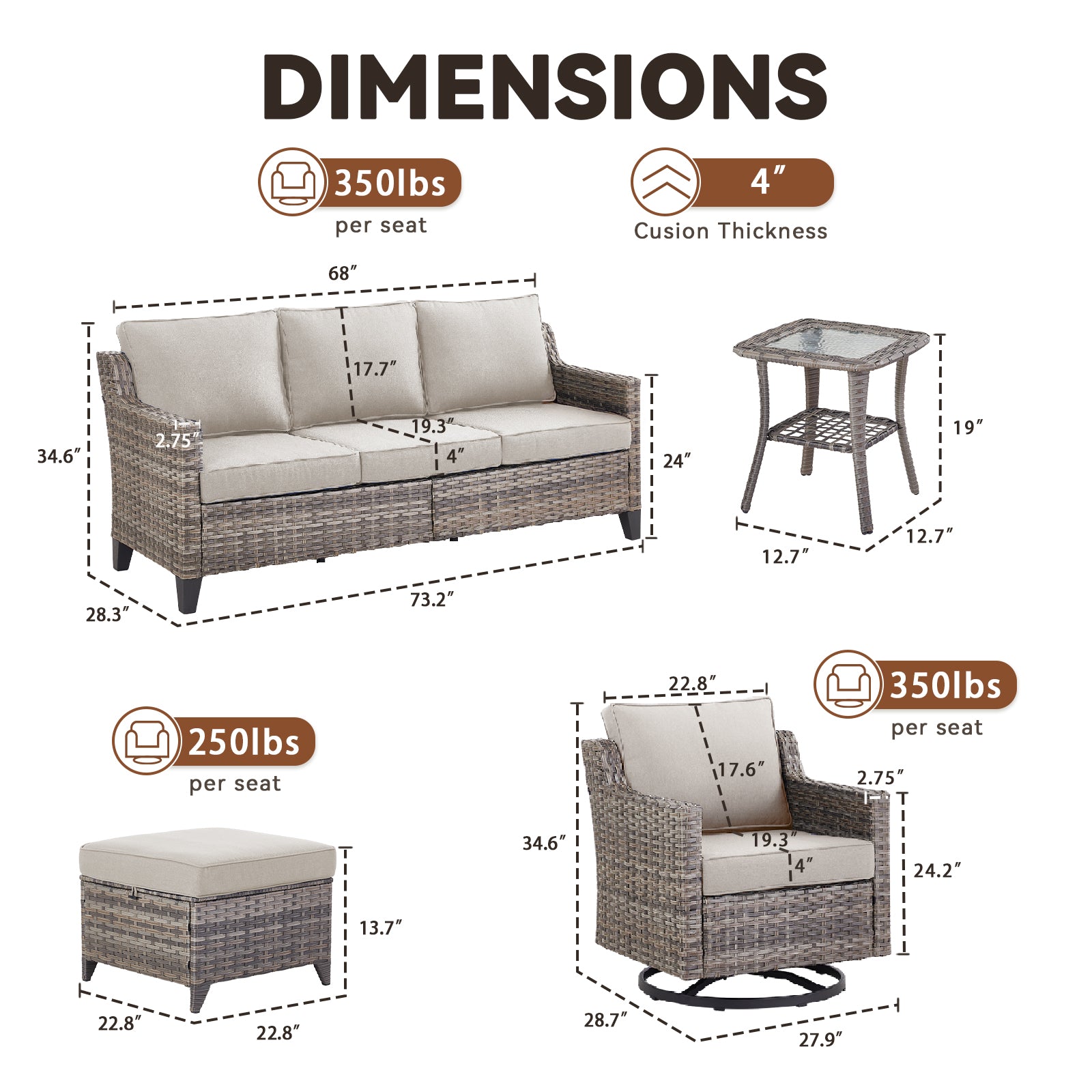 4-Inch Thick Cushions for Lasting Comfort