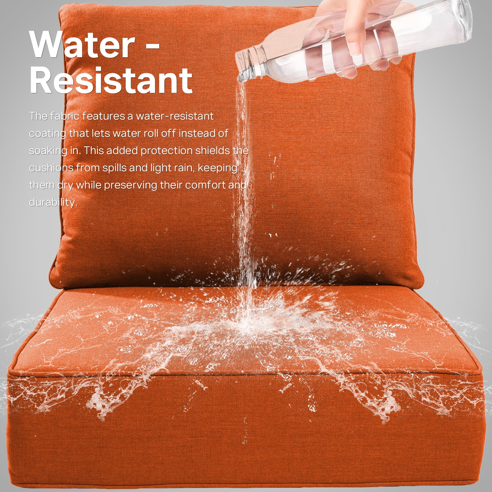 Refresh your outdoor seating with our 22" x 24" x 6" deep seat cushions—crafted for both comfort and durability. Filled with premium 30D high-resilience foam and covered in fade-resistant olefin fabric, these cushions provide plush, long-lasting support and effortless style. Perfect for upgrading patio chairs, loveseats, or sectionals, they bring a crisp, tailored look to any outdoor space.