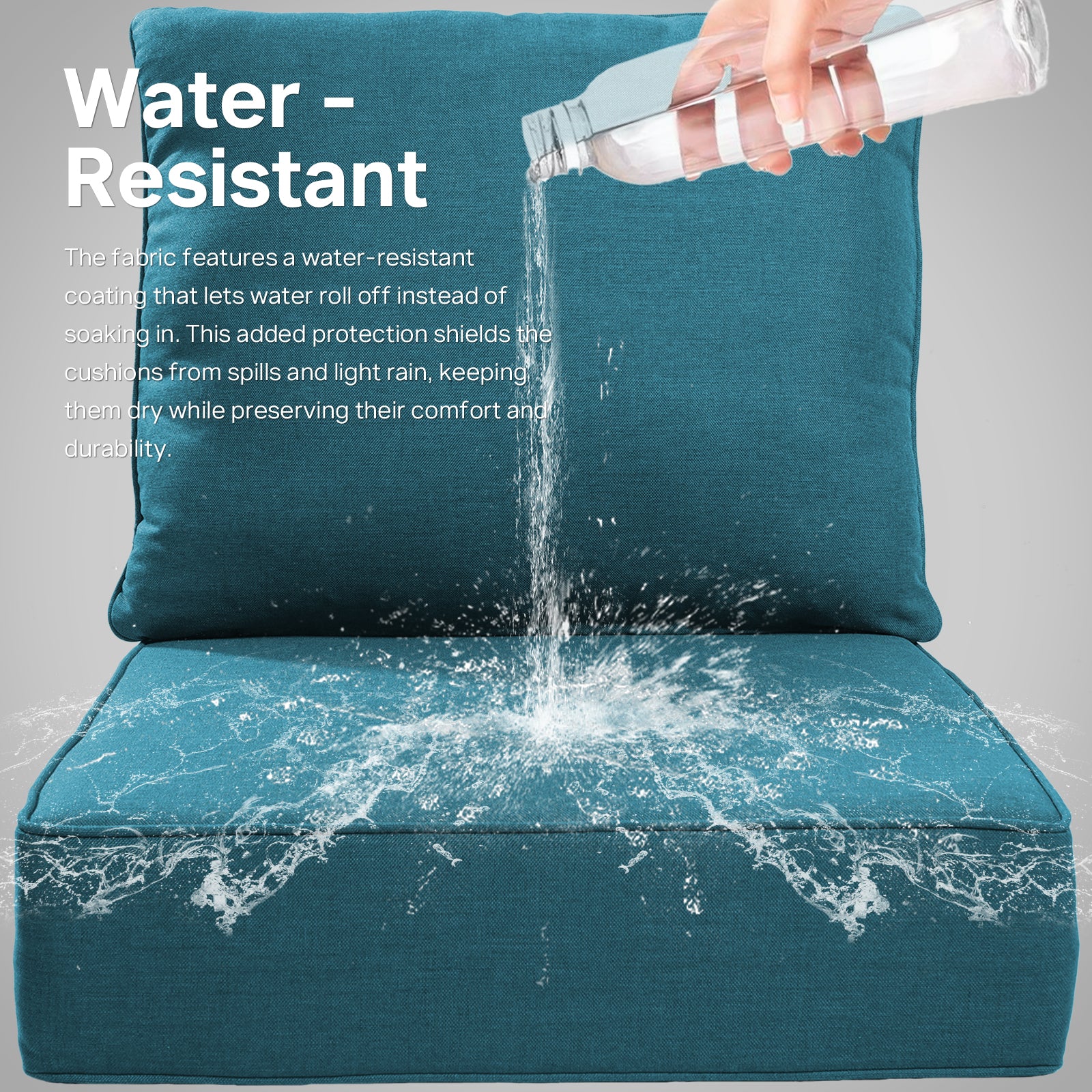 5. Complete Set & Versatile Style: Includes one (1) 22" x 24" x 6" seat cushion and one (1) 22" x 21" x 5.9" back cushion. Available in eight versatile colors—Blue, Baby Blue, Beige, Orange, Red, Teal, Peacock Green, and Grey—to seamlessly complement any patio, porch, or garden décor.