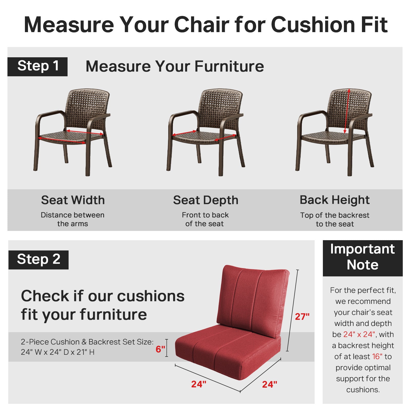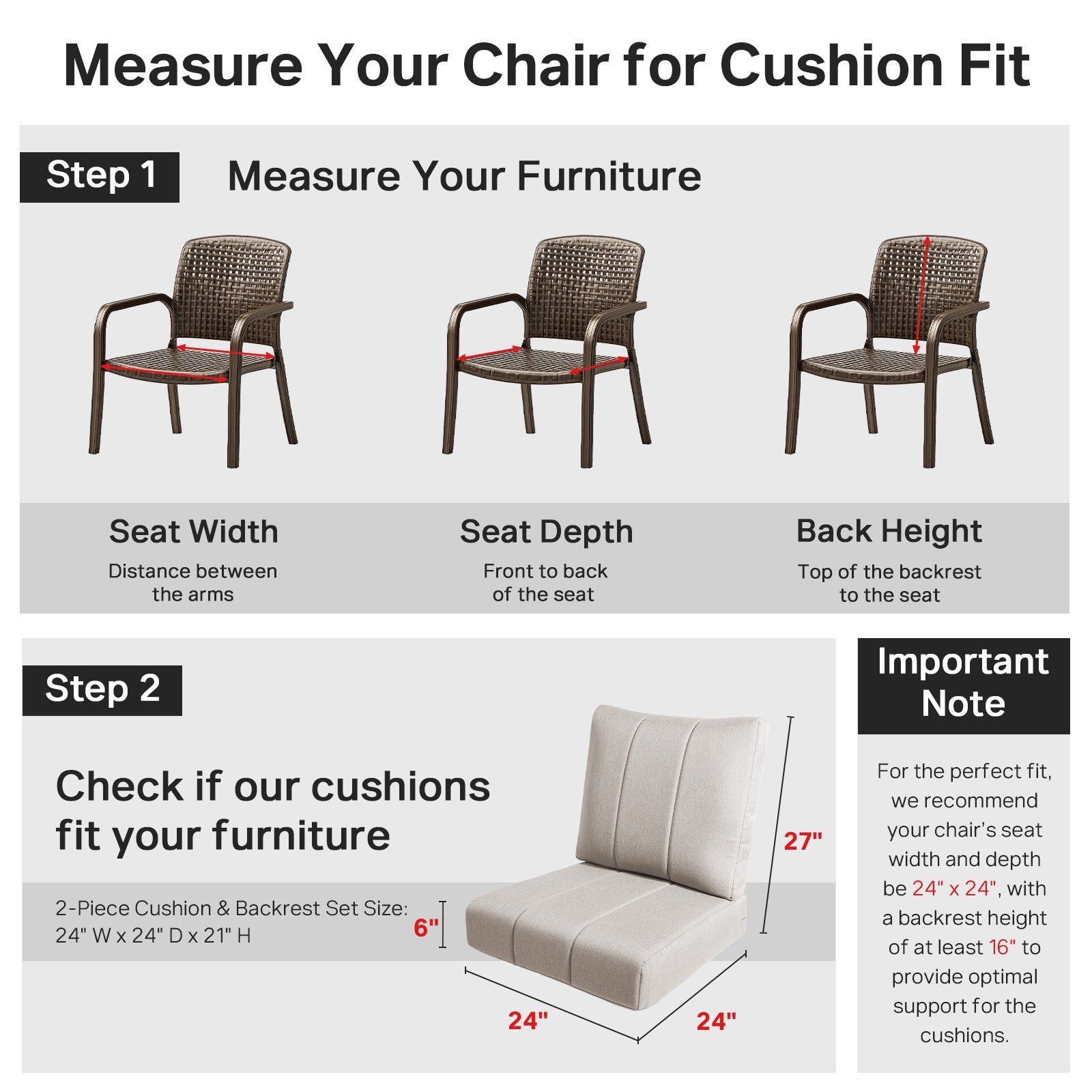 Designed at 24" x 24" x 6" (W x D x H) to fit most standard patio chairs, loveseats, and outdoor sectionals. Please measure your furniture before ordering to ensure a precise fit.