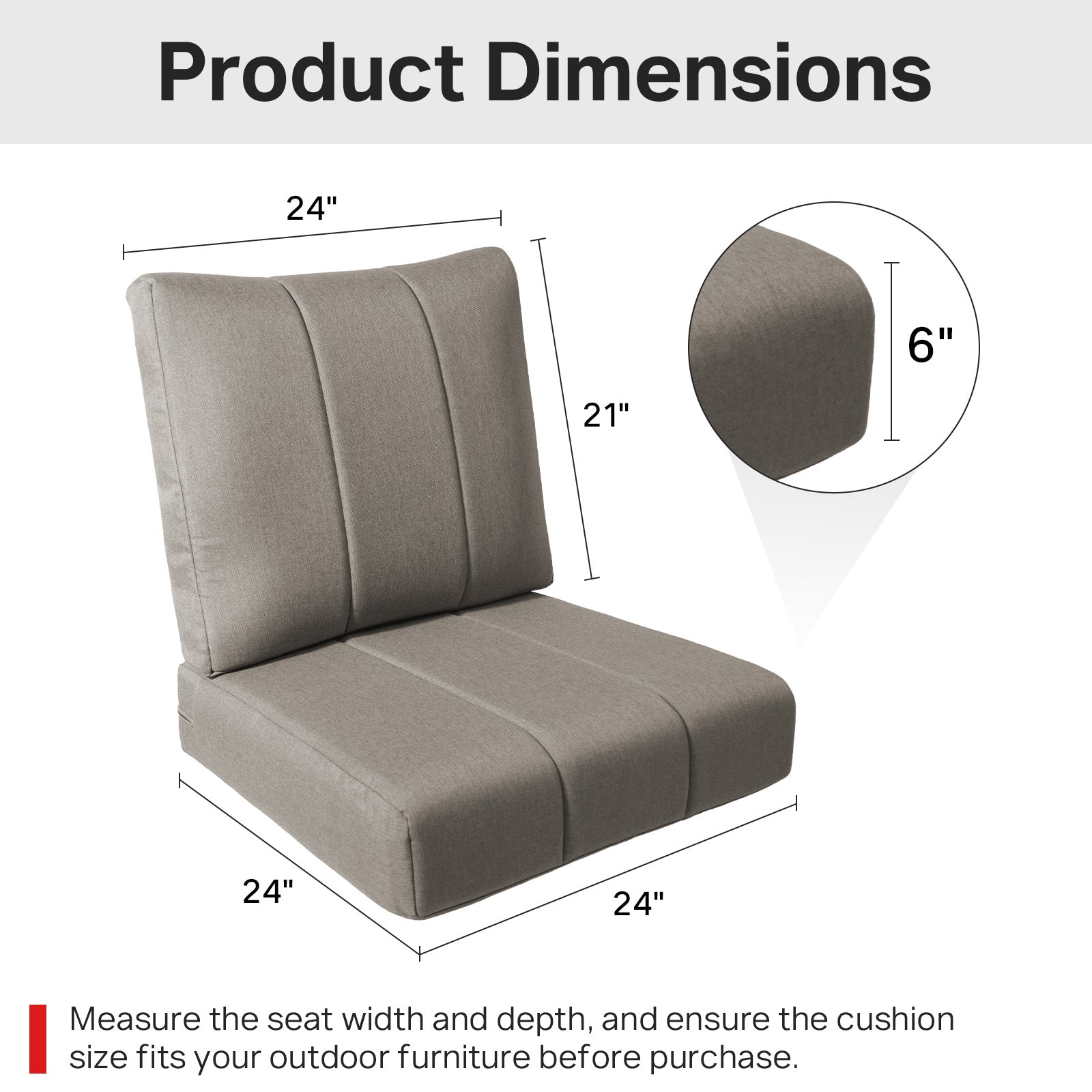 Refresh your outdoor seating with our 24" x 24" x 6" deep seat cushions, designed for exceptional comfort and long-lasting durability. Filled with premium 28D high-resilience foam and wrapped in fade-resistant olefin fabric, these cushions deliver plush support with a clean, tailored look. Ideal for patio chairs, loveseats, or sectional seating, they elevate both comfort and style in any outdoor space.