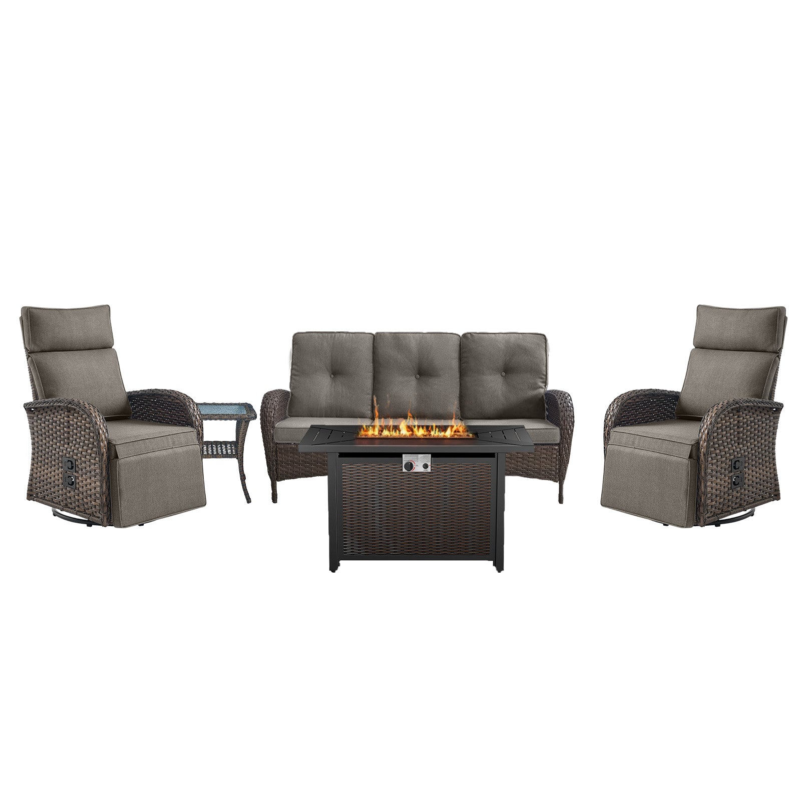 NDS Series 5-Piece Premium Outdoor Set: 2 Swivel Recliners + 1 Sofa & 43 Inch Propane Fire Table with Side Table