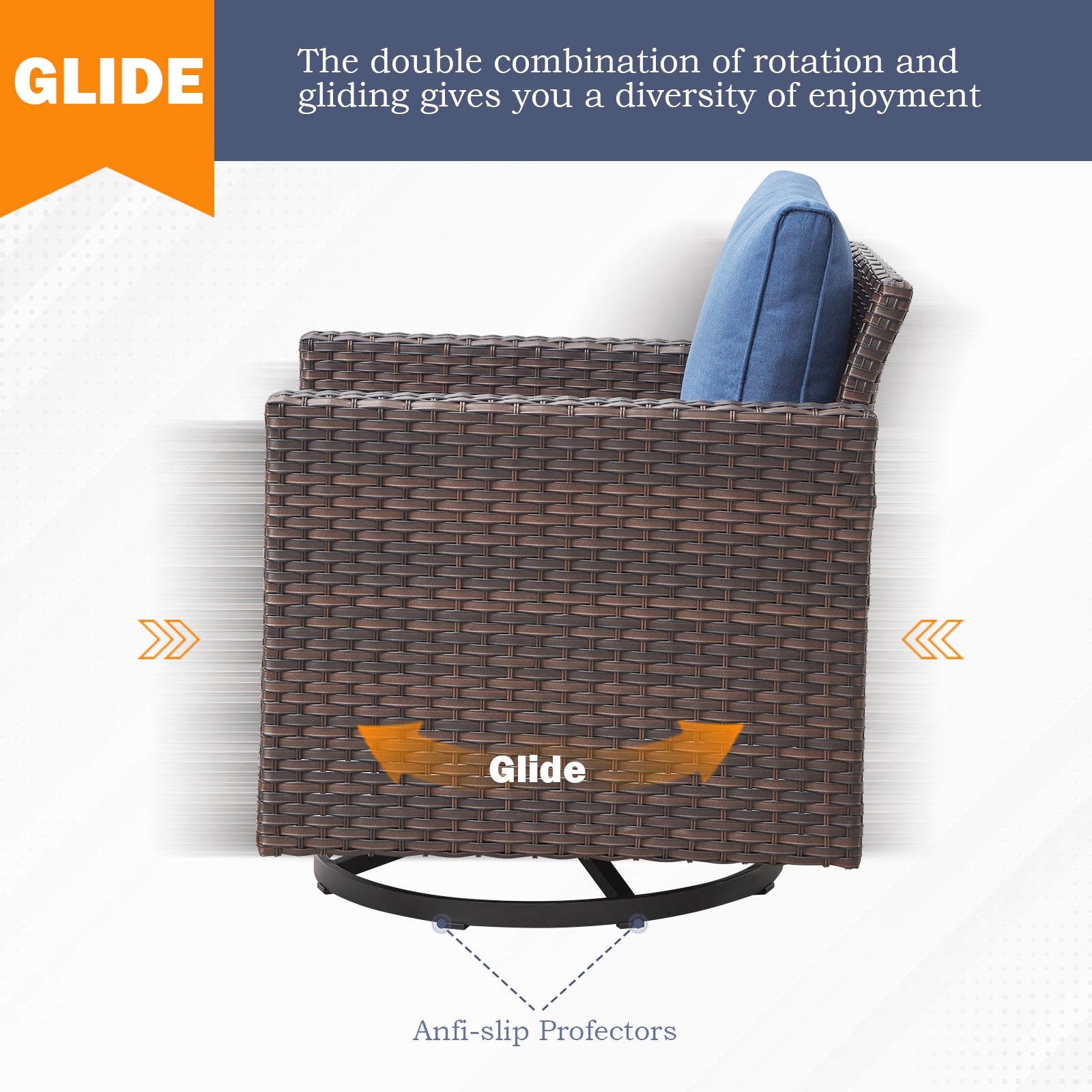 Enjoy effortless full-rotation and gentle gliding motion. The heavy-duty, rust-resistant base supports up to 350 lbs, offering superior stability and a relaxed seating experience.