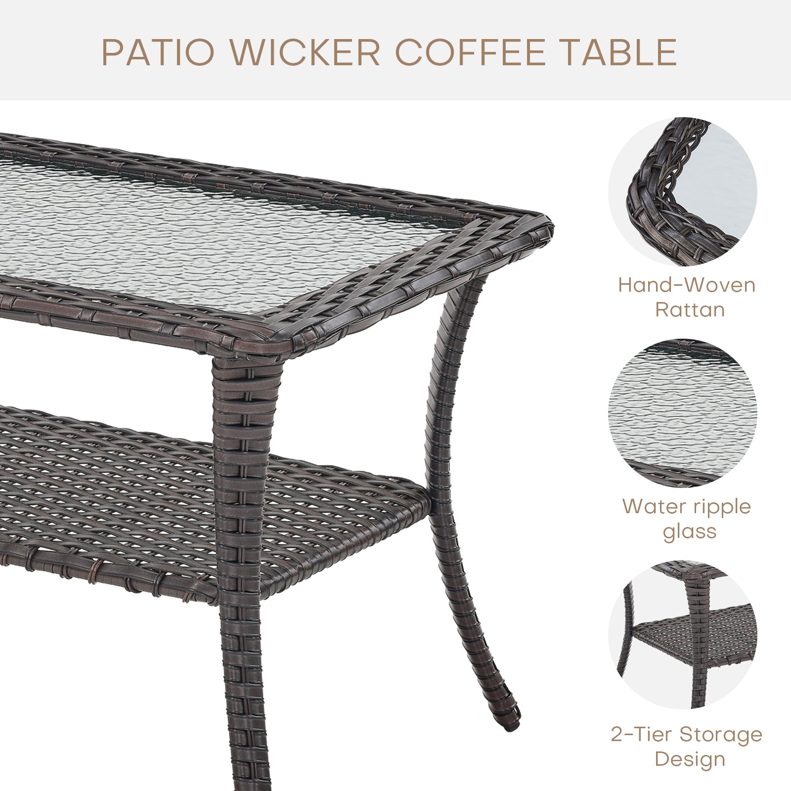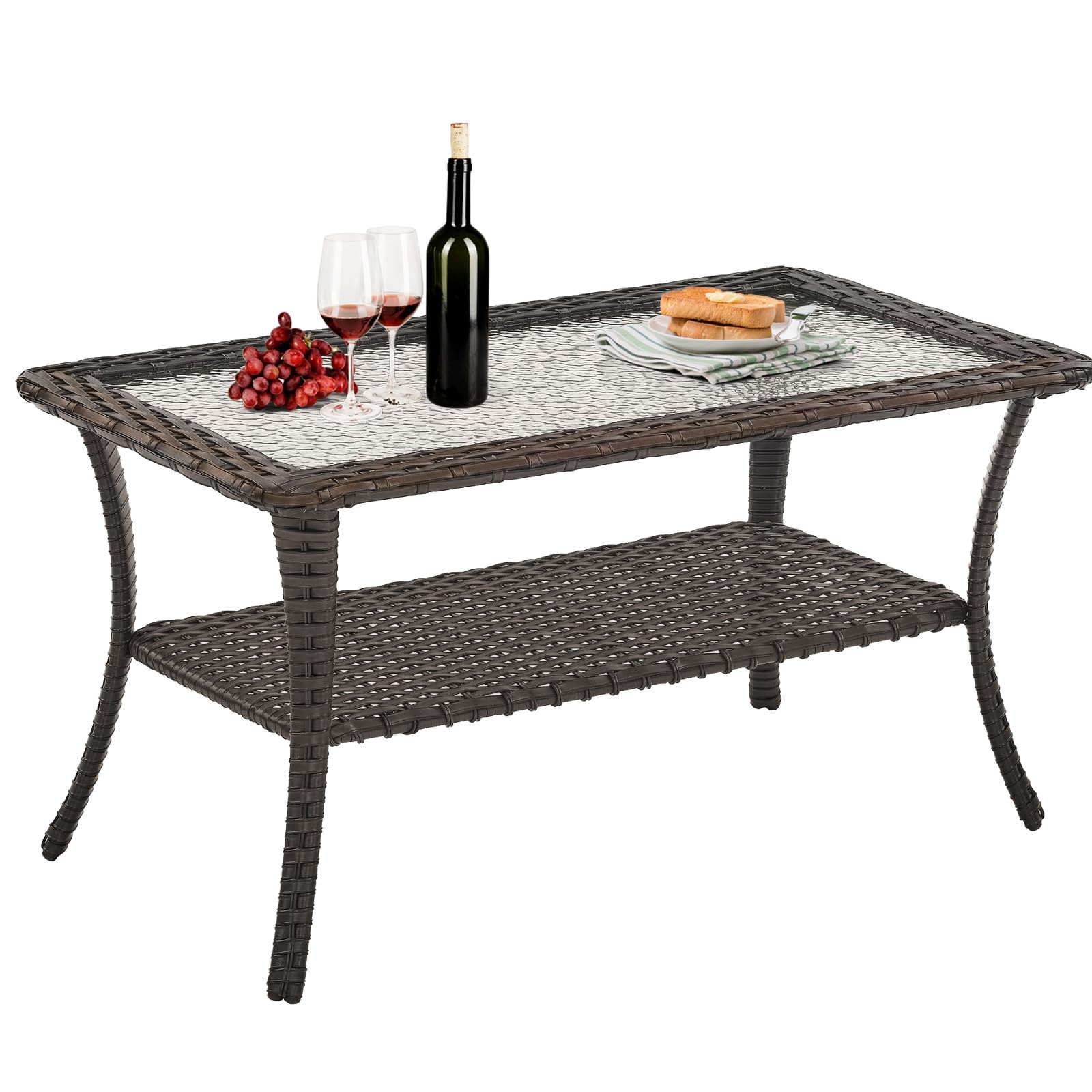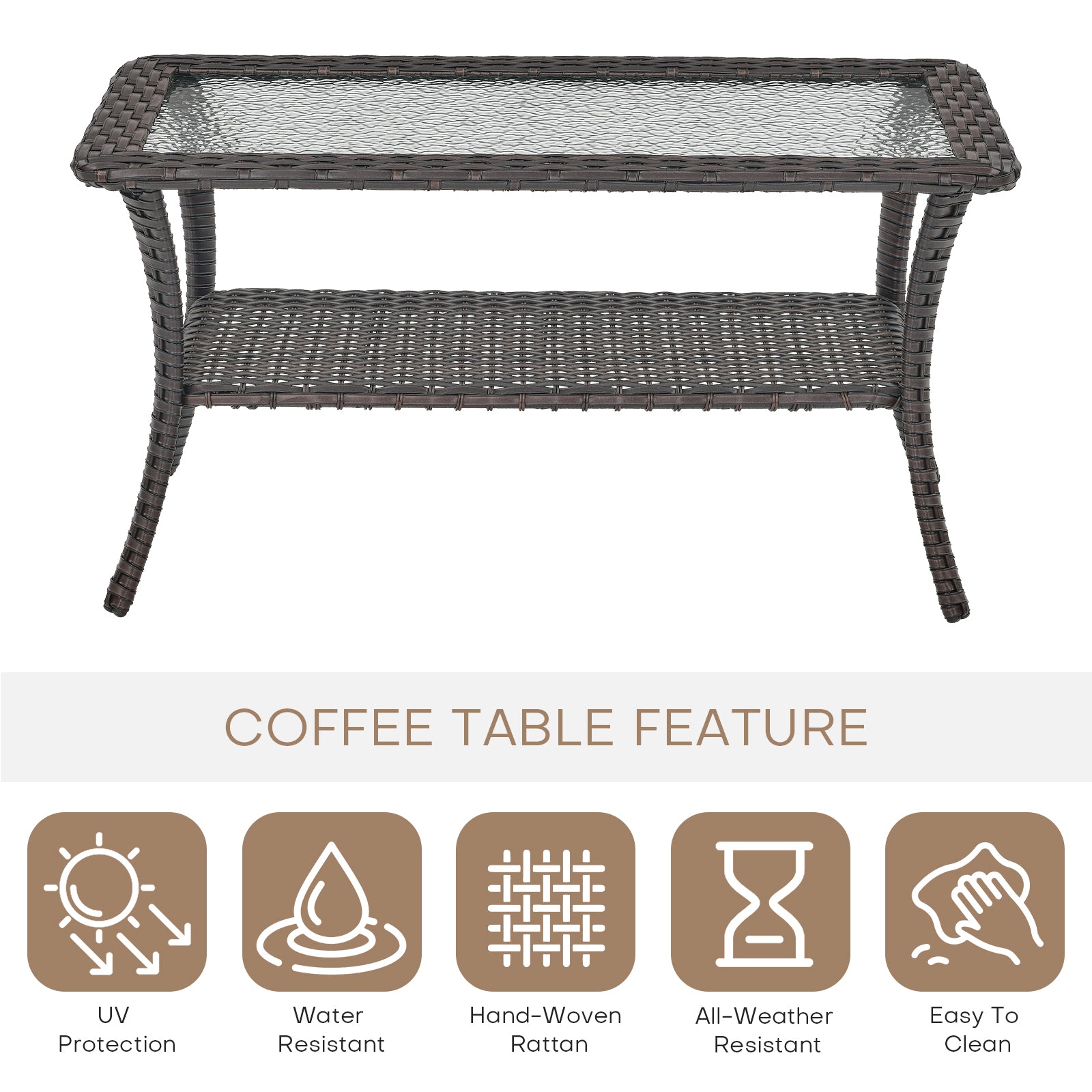 Elevate your outdoor space with this handwoven wicker coffee table, featuring a natural look and practical design. Measuring 40"L x 22"W x 20"H, this patio coffee table includes a ripple-style tempered glass top and a convenient lower storage shelf. Whether placed on a balcony, porch, or in a sunroom, its durable structure and natural charm make it the perfect centerpiece for any outdoor lounge setup.