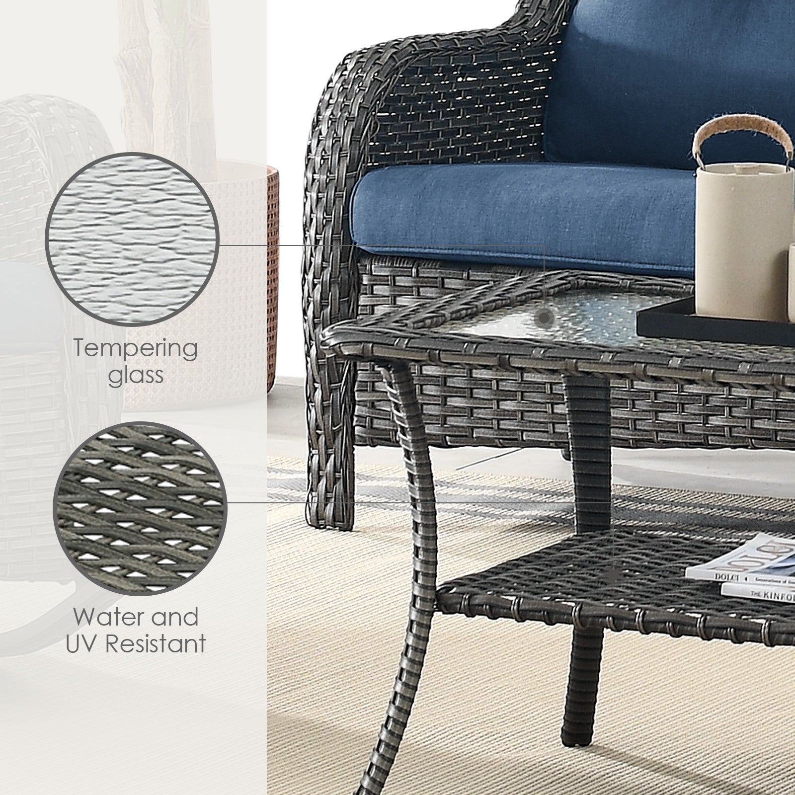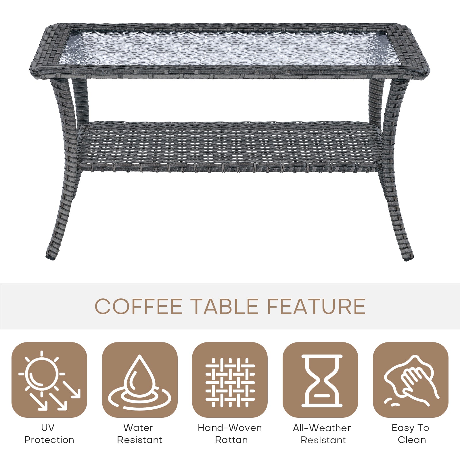 Coffee Table: PE Wicker & Steel Frame & Tempered glass