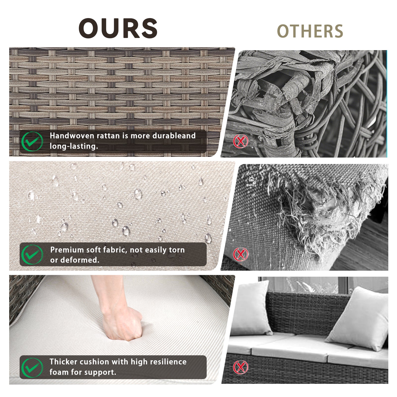 Hand-Woven All-Weather PE Wicker: Crafted from high-quality PE wicker that is water-resistant, UV-resistant, and built to withstand all-season outdoor conditions.