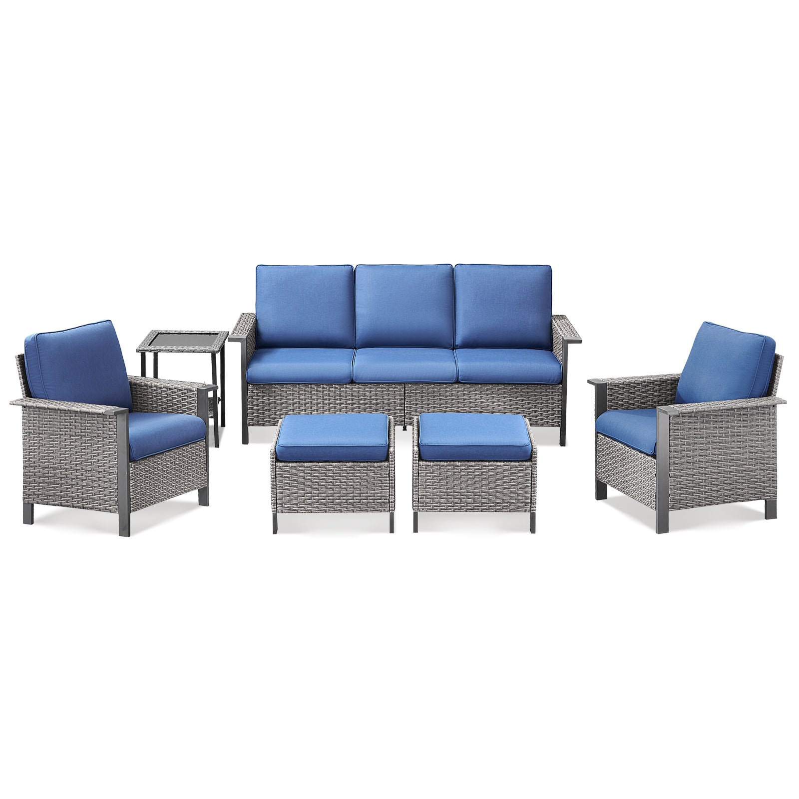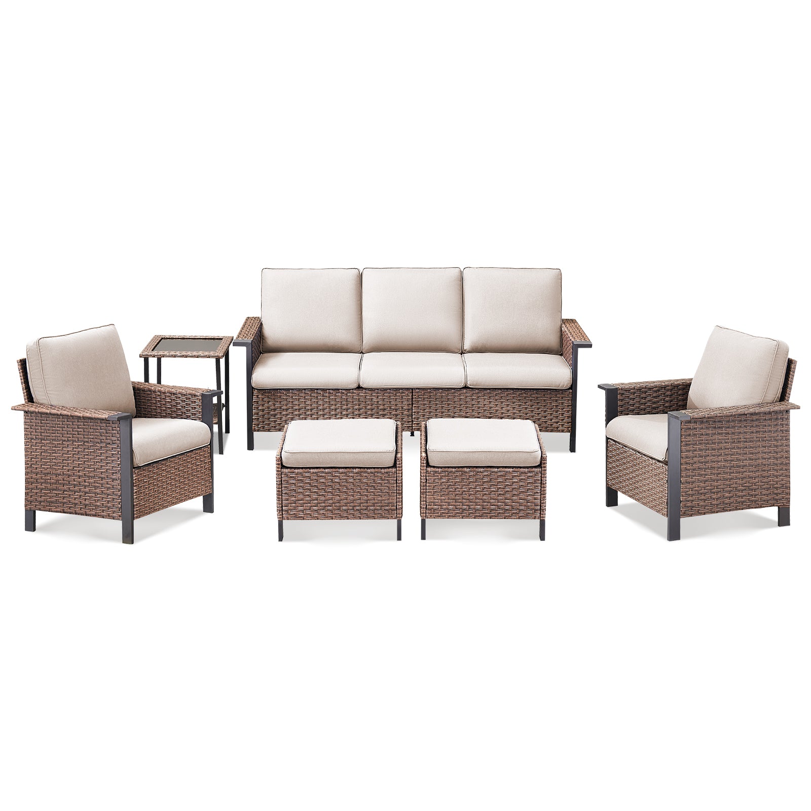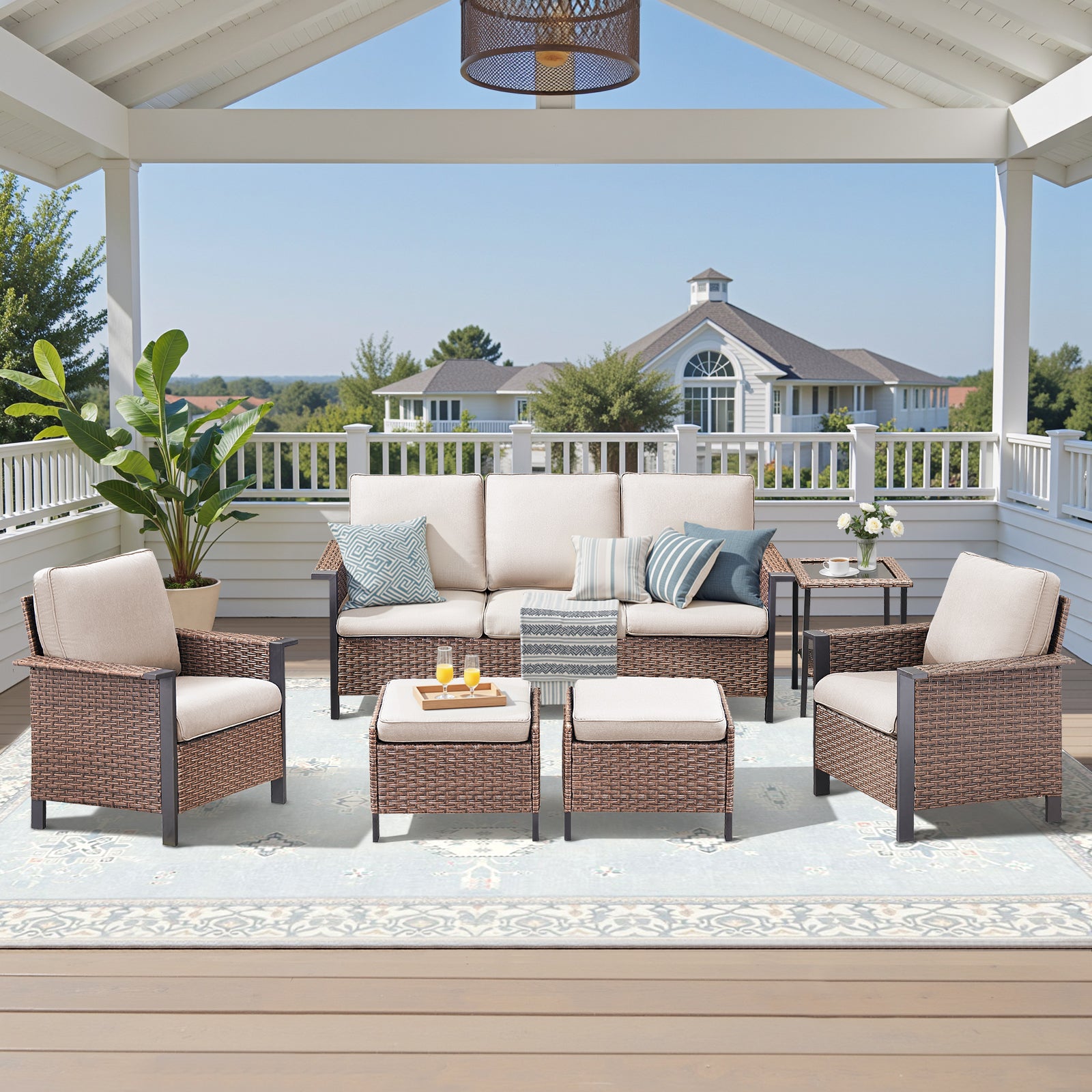 Patio Conversation Patio Set (6-Piece) — All-Weather Rattan Furniture with 3-Seater Sofa & Patio Chairs, WNG Series