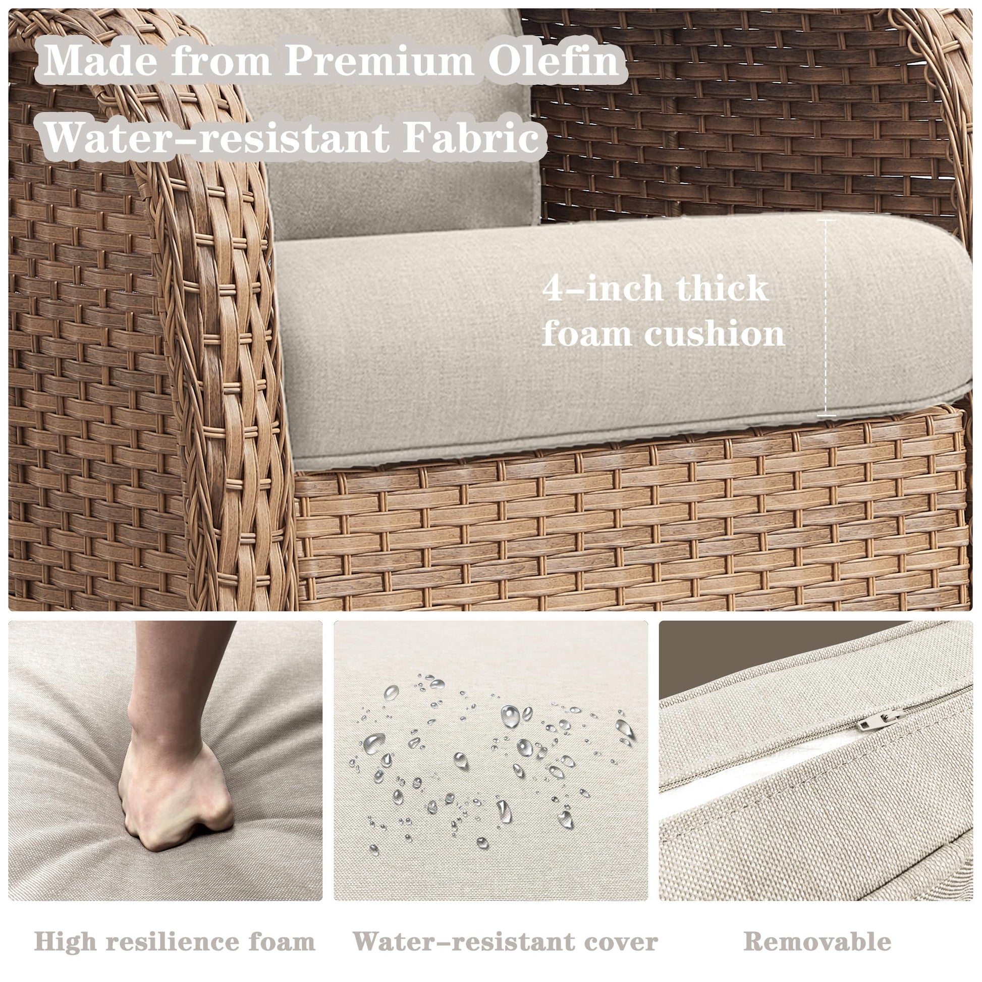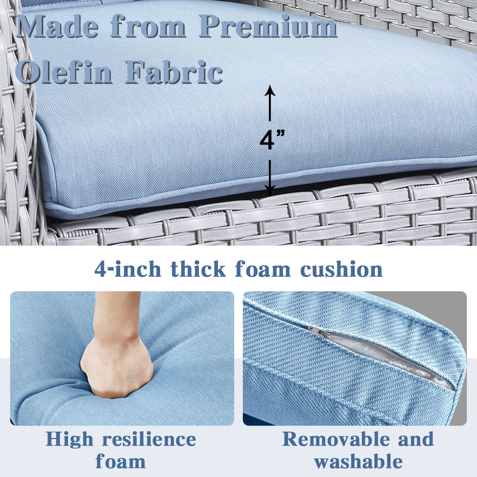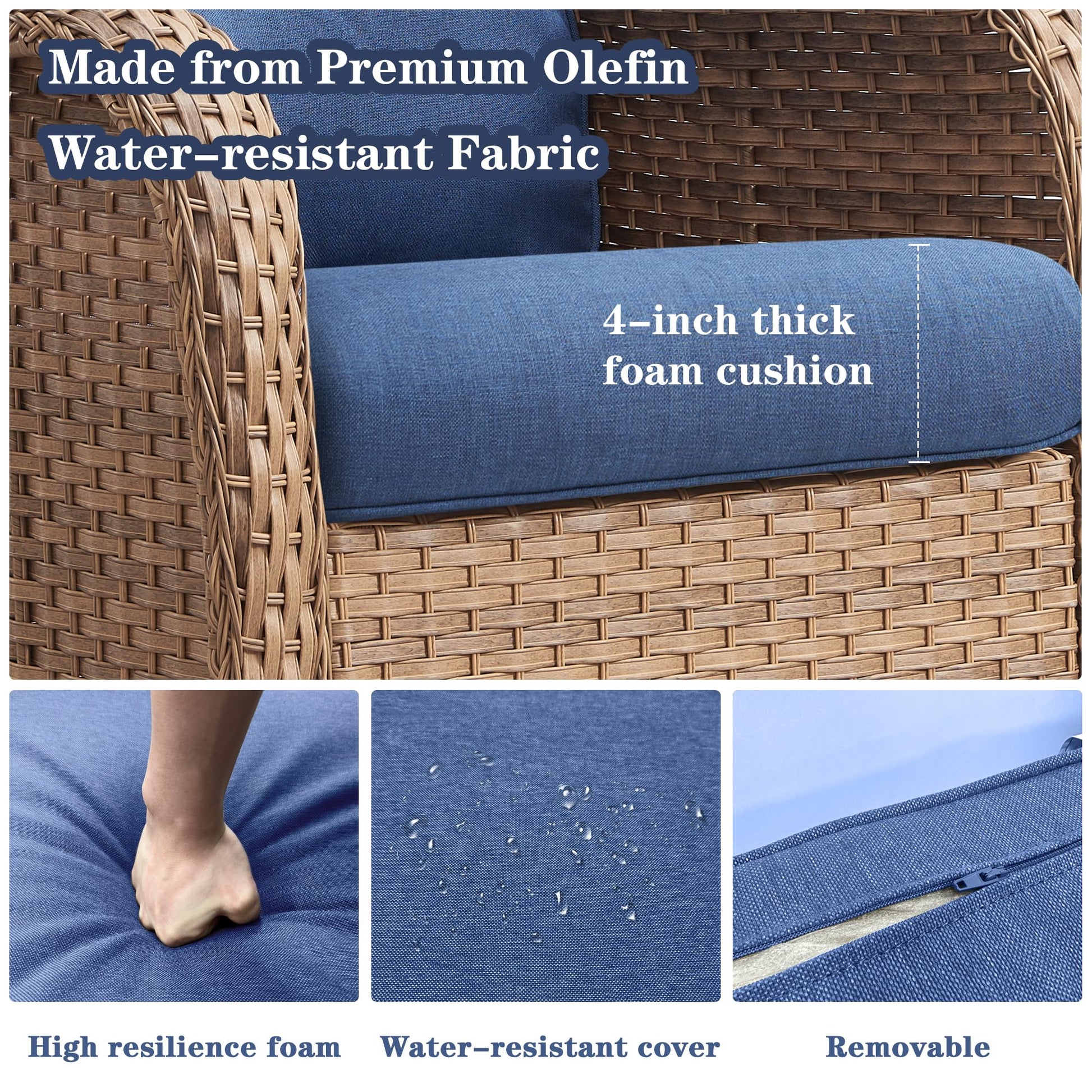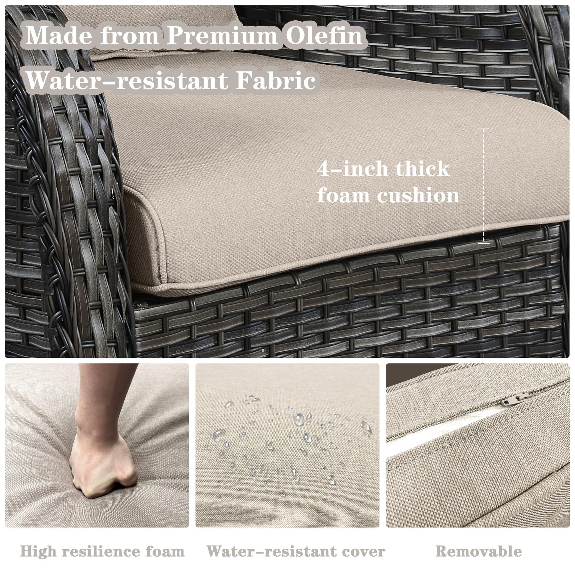 4. Water-Resistant & Easy-Care Cushions: Covered in high-quality outdoor olefin fabric, the cushions are water-resistant and come with removable zippered covers for easy cleaning.