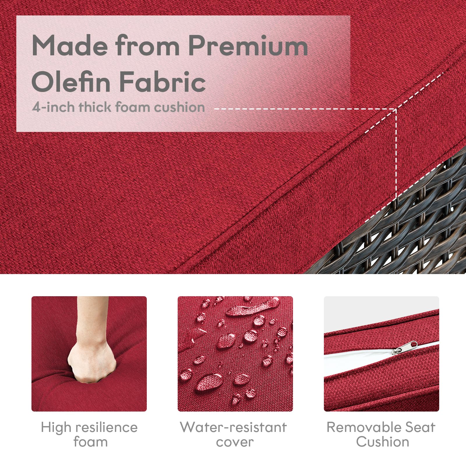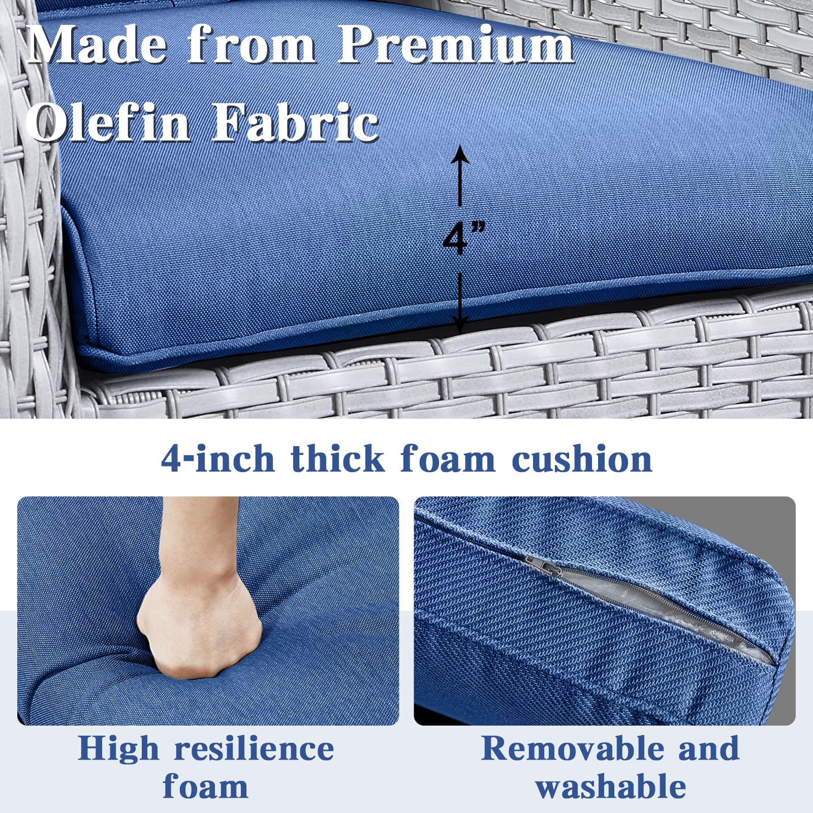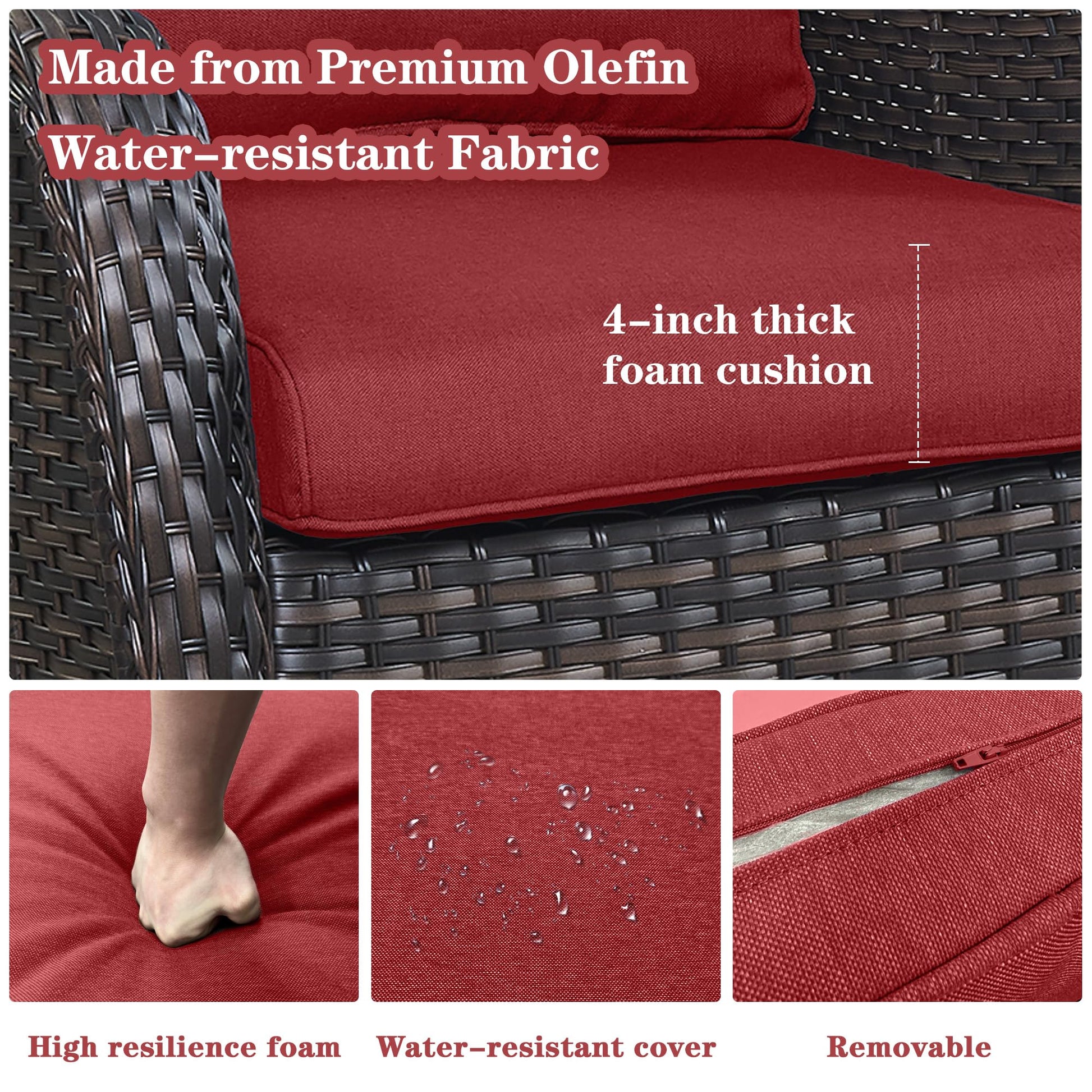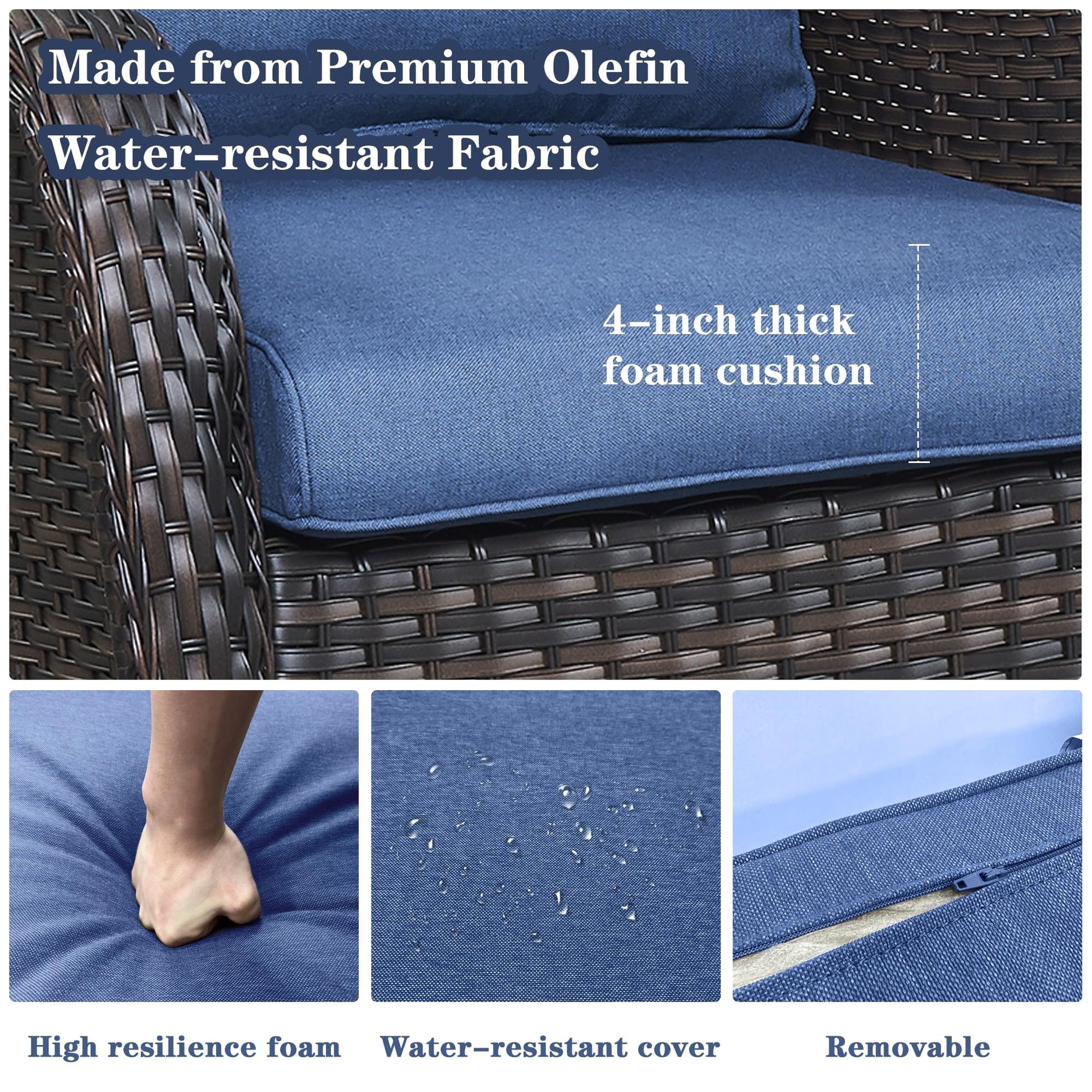 4. Water-Resistant & Easy-Care Cushions: Covered in high-quality outdoor olefin fabric, the cushions are water-resistant and come with removable zippered covers for easy cleaning.