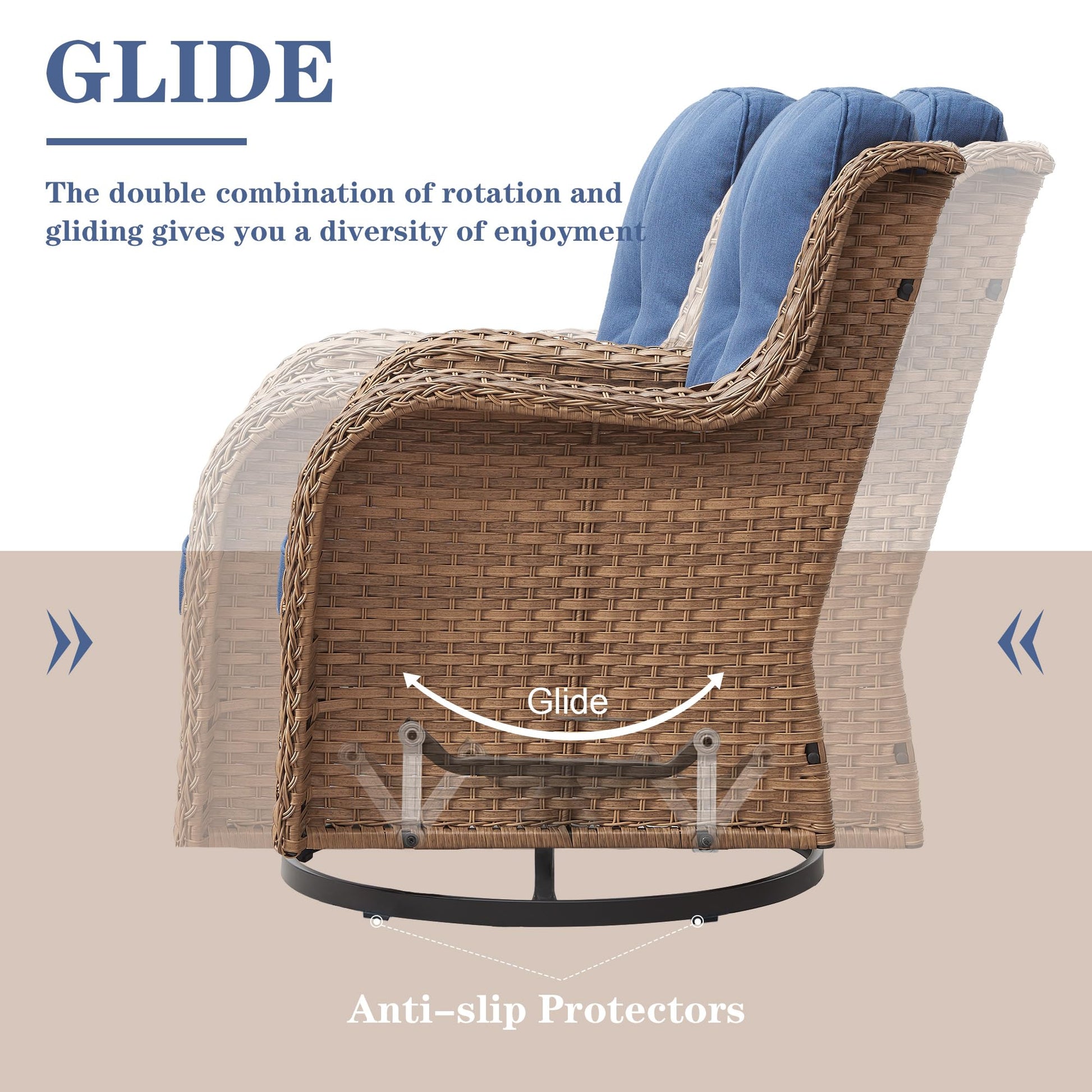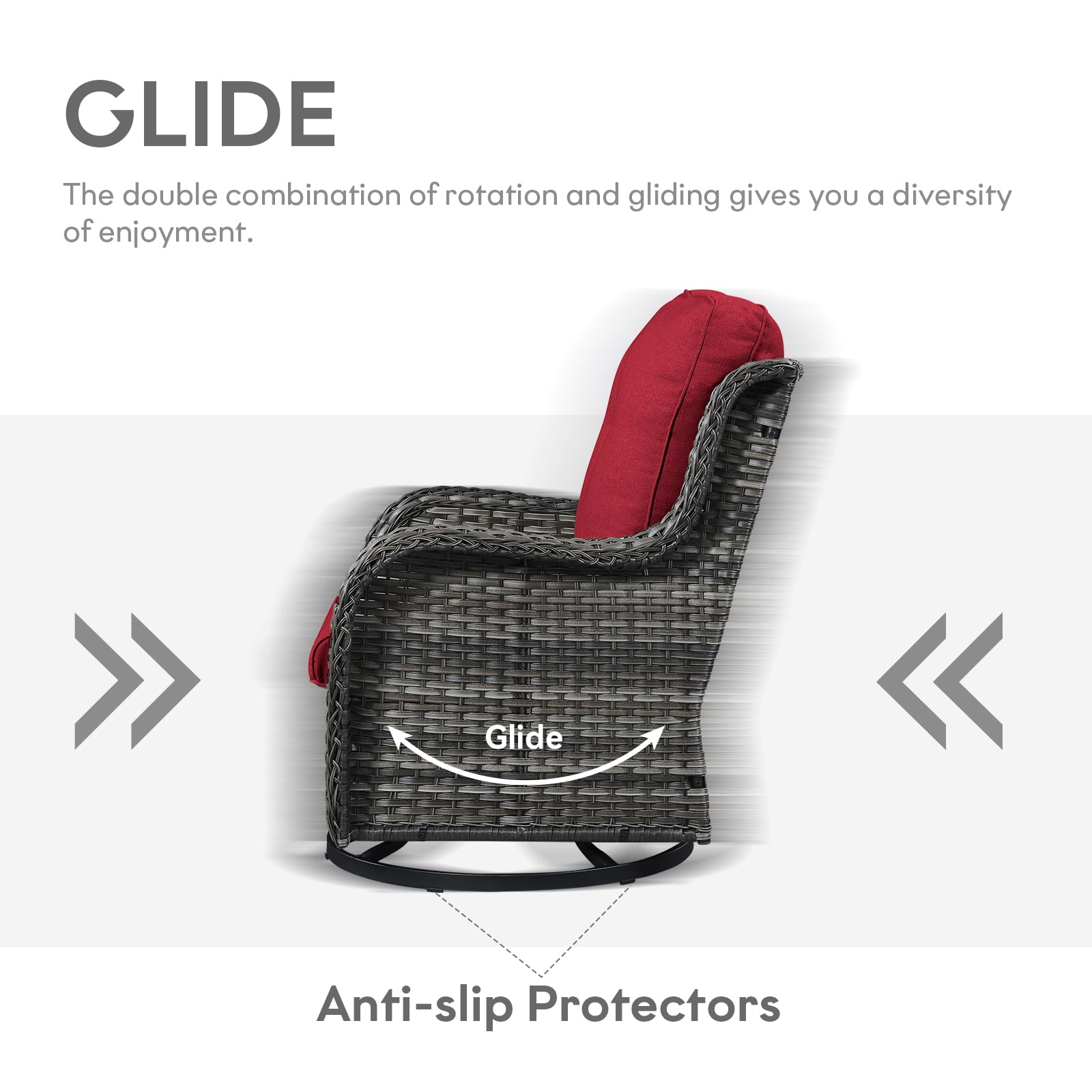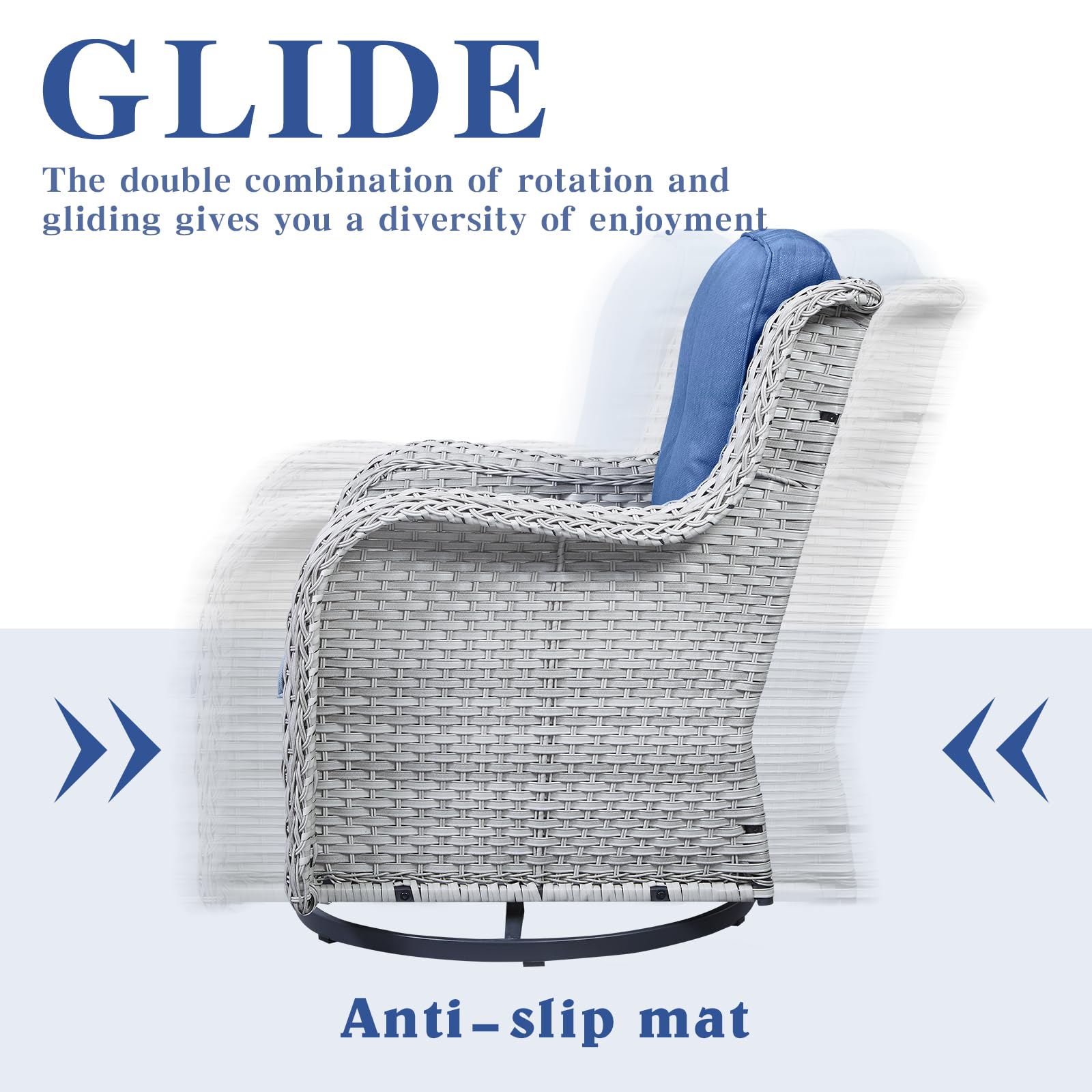 3. Swivel & Glide Design: Each swivel glider chair features a dual-function disc base allowing for smooth 360° rotation and gentle back-and-forth gliding. Non-slip pads ensure stability and prevent tipping.