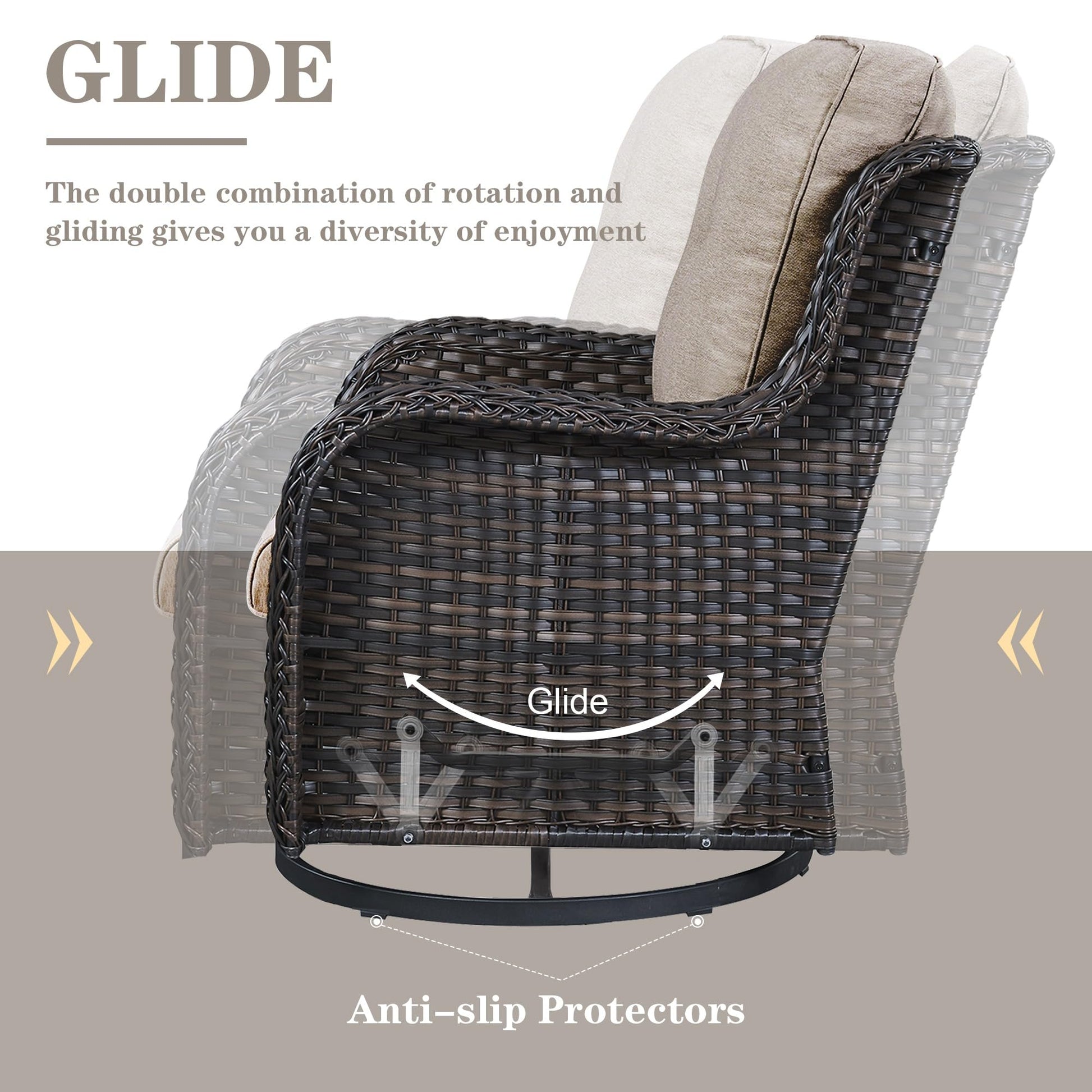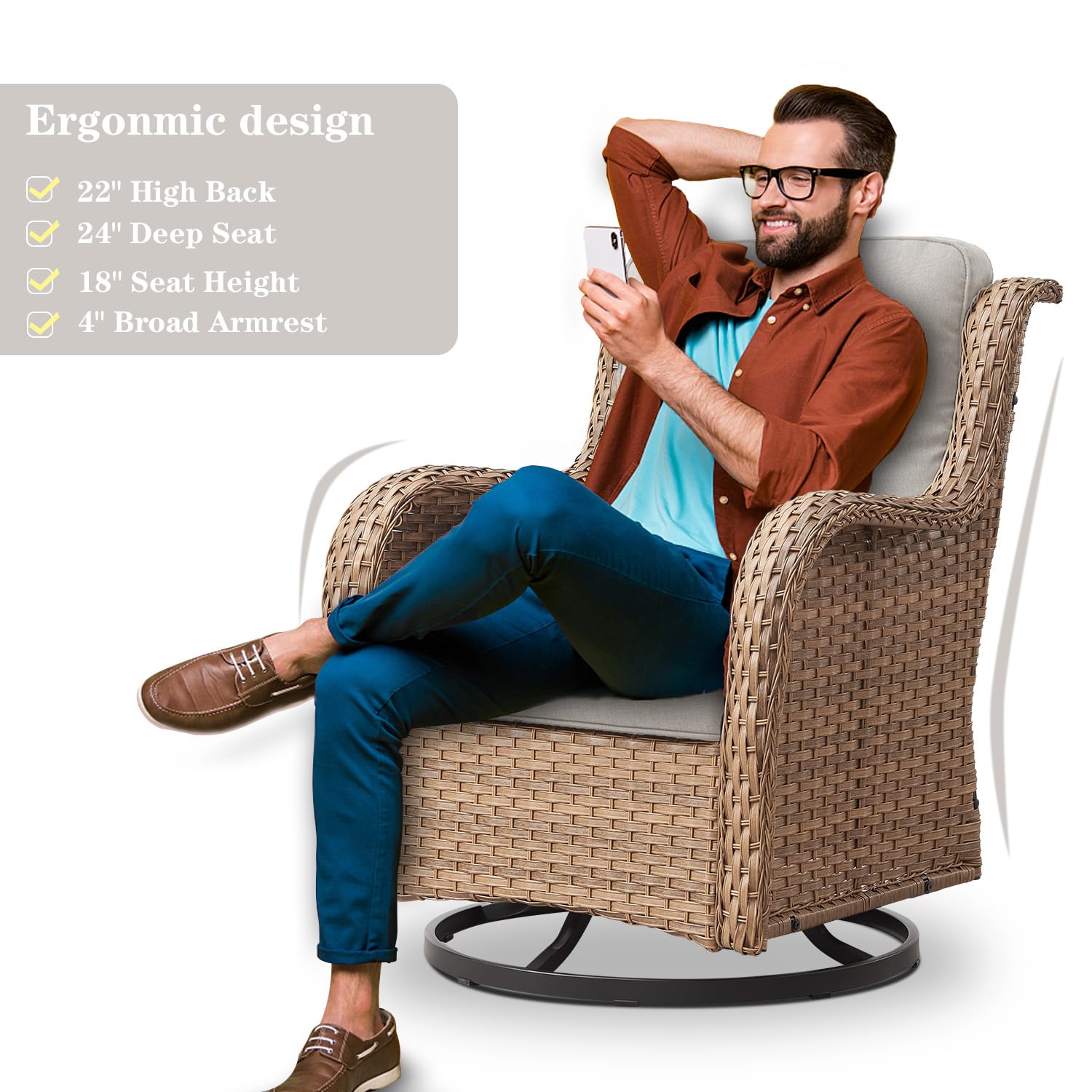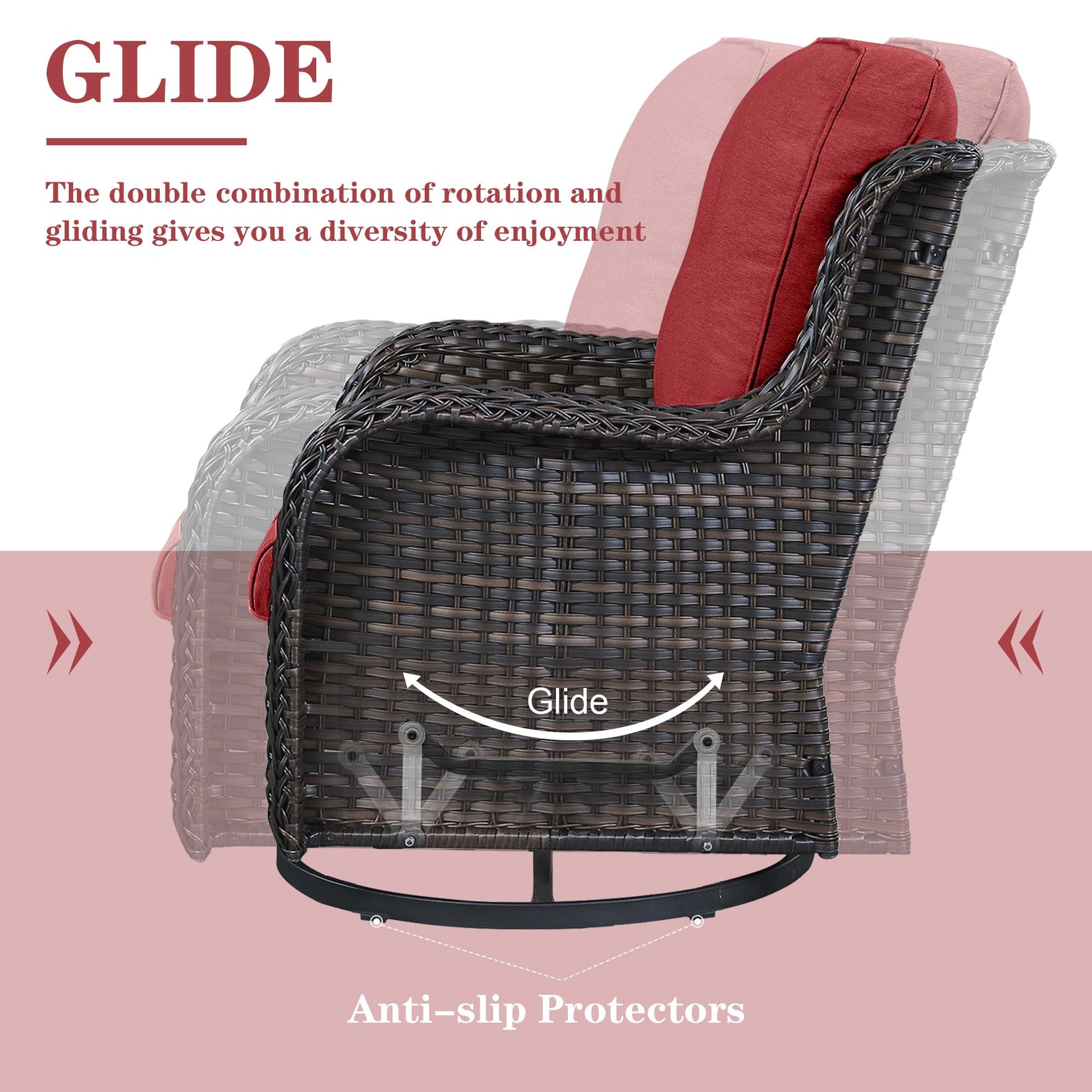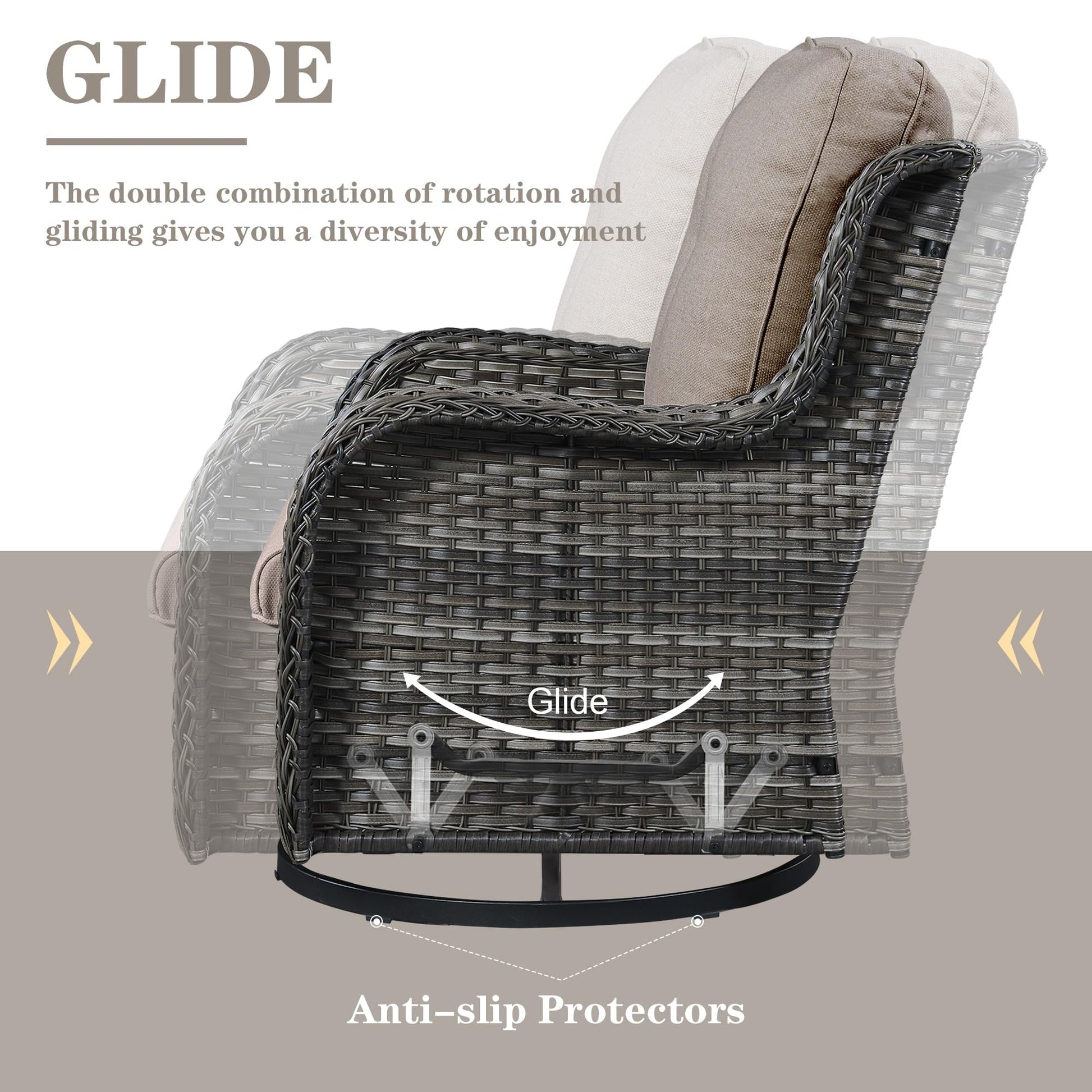 3. Swivel & Glide Design: Each swivel glider chair features a dual-function disc base allowing for smooth 360° rotation and gentle back-and-forth gliding. Non-slip pads ensure stability and prevent tipping.