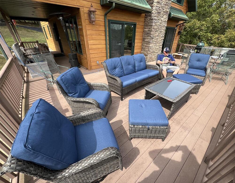 2. Comfortable & Easy to Clean: Ergonomically designed with 4-inch thick foam seat cushions and 8-inch thick cotton back cushions. The outdoor-grade olefin fabric covers are waterproof and removable for easy cleaning.