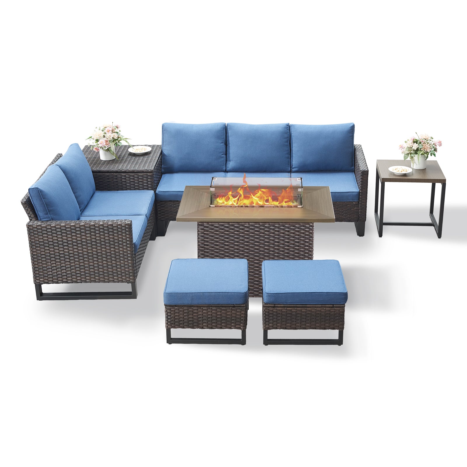 Patio Conversation Set with Fire Pit Table – Outdoor Sectional Set with Storage Box, Ottoman & Side Table, GRS Series
