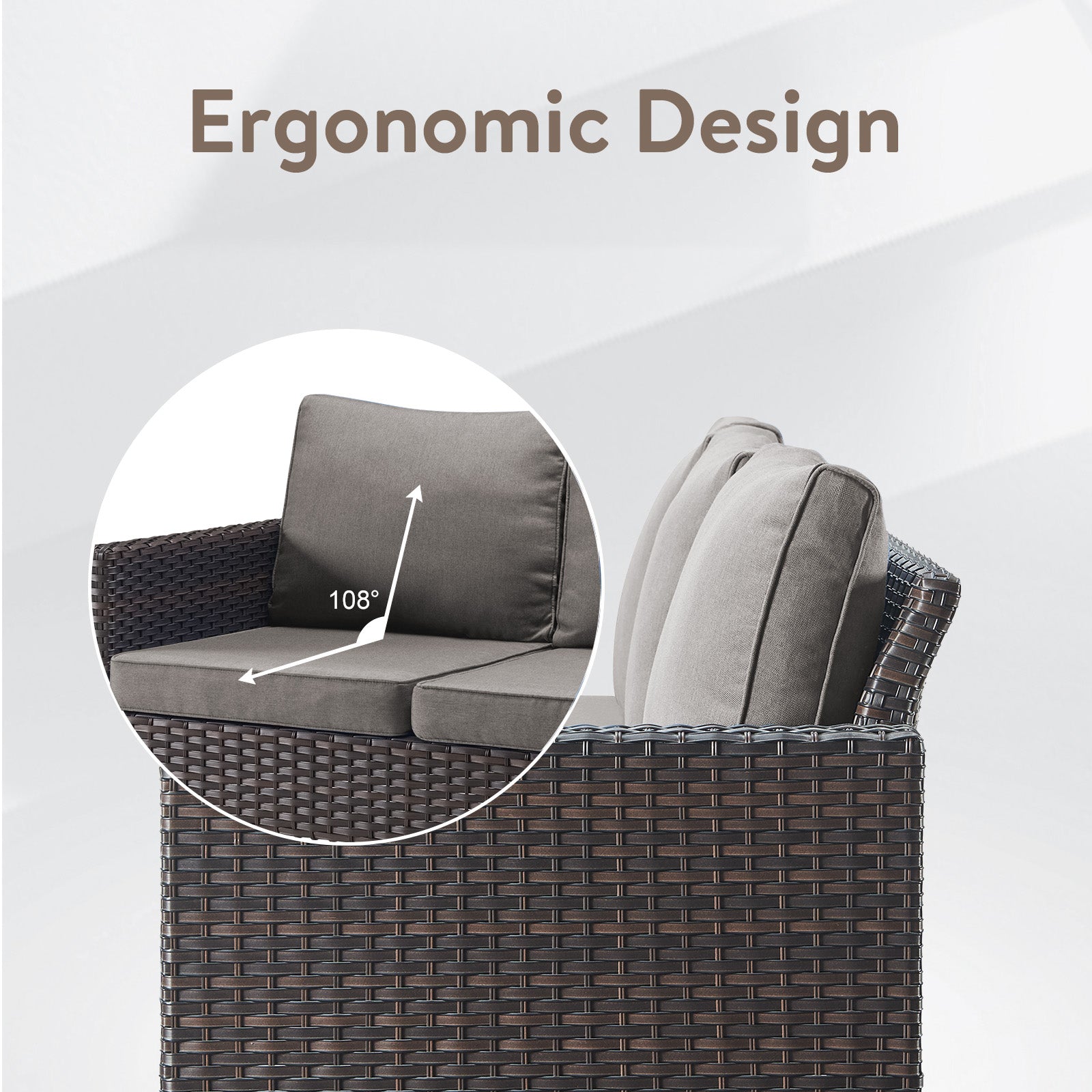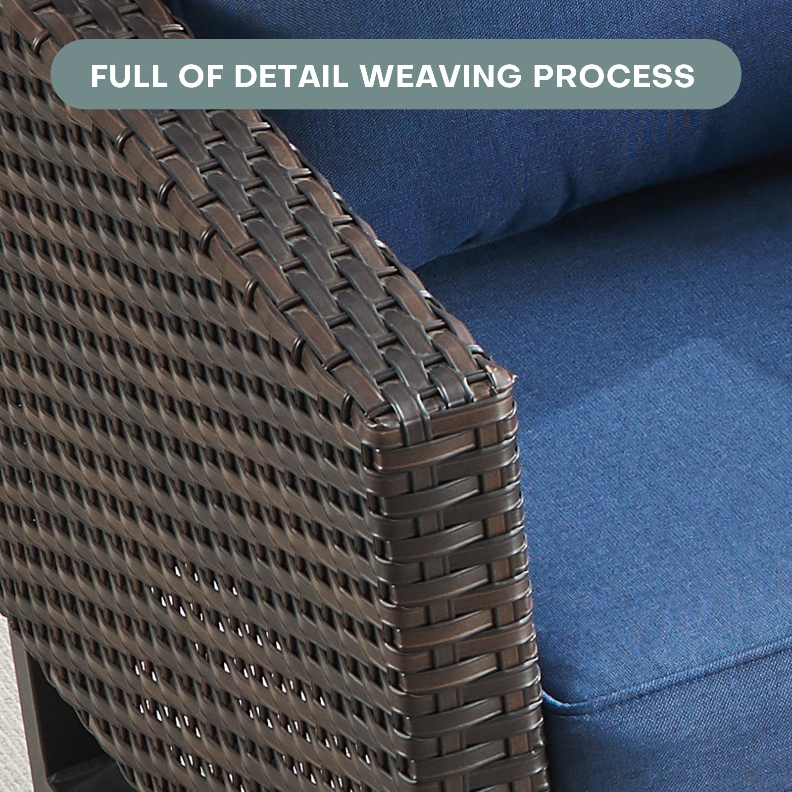 Crafted with hand-woven all-weather PE wicker and a powder-coated steel frame, this outdoor furniture set is built to withstand sun exposure, rain, and seasonal changes for long-term outdoor use.