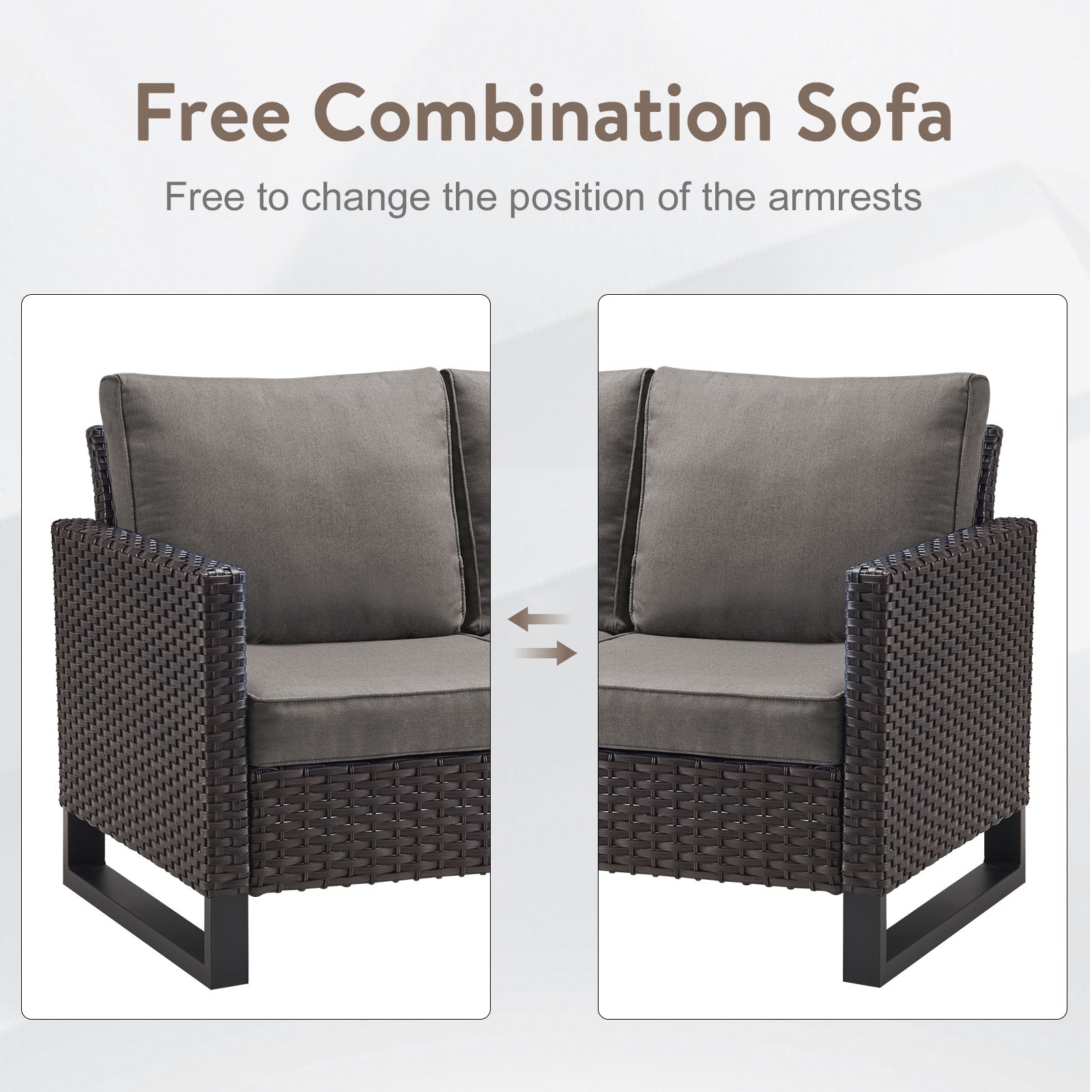 Create a warm and inviting outdoor retreat with this Belord modular patio conversation set. Designed with a left and right corner sofa, ottoman, side table, integrated storage box, and a versatile fire pit table, this set blends comfort, functionality, and modern style. Crafted from all-weather PE wicker with a sturdy steel frame, it offers durable performance season after season. The fire pit table adds cozy ambiance for evening gatherings and easily converts into a coffee table with the included lid, making this set ideal for relaxing, entertaining, and everyday outdoor living on your patio, deck, or backyard.