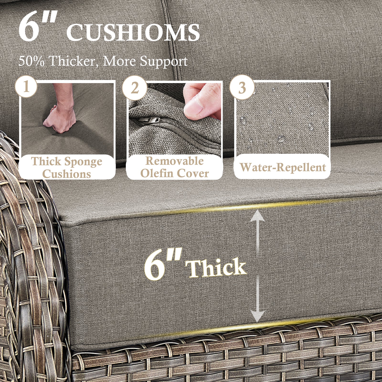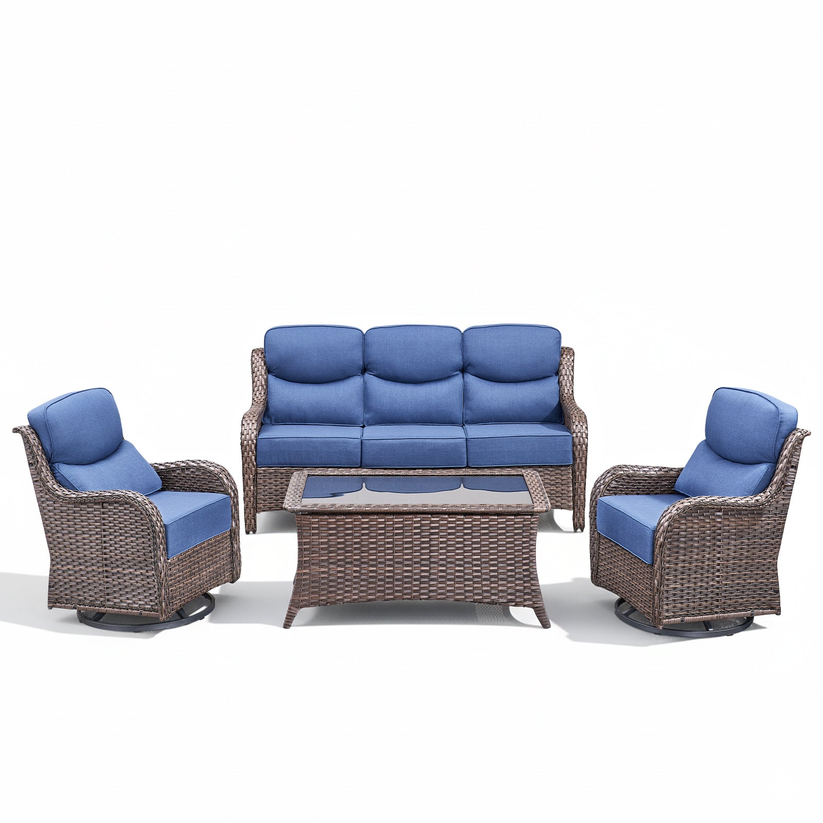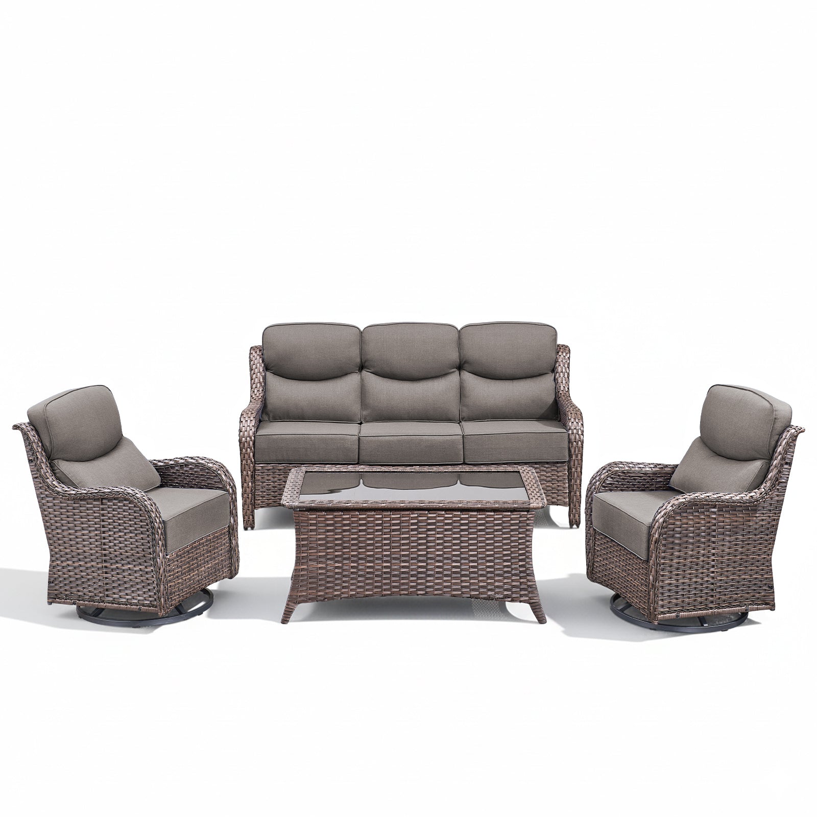 Premium 4PCS Patio Conversation Set for Backyard & Deck, Hand-Woven Rattan Sofa, Swivel Chairs & Coffee Table with 6" Cushions, NT Series