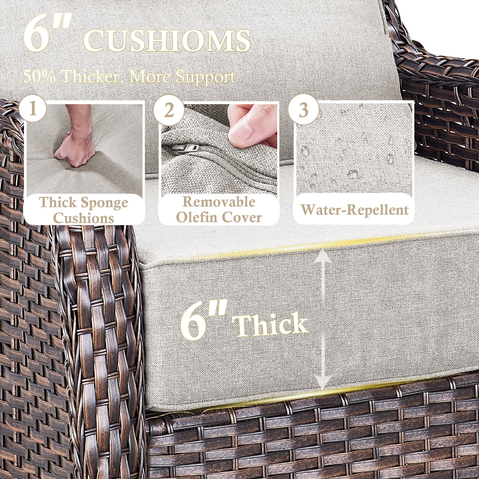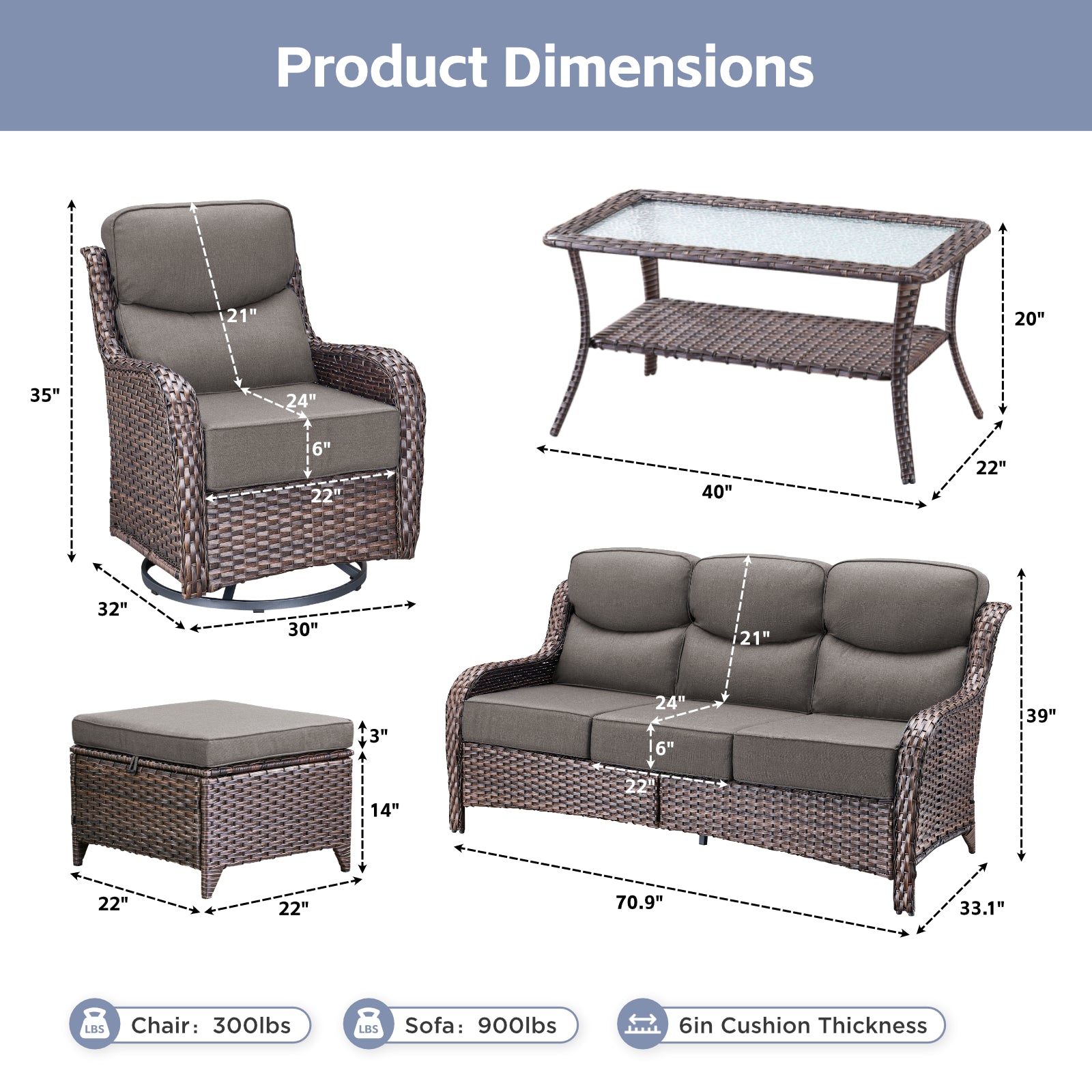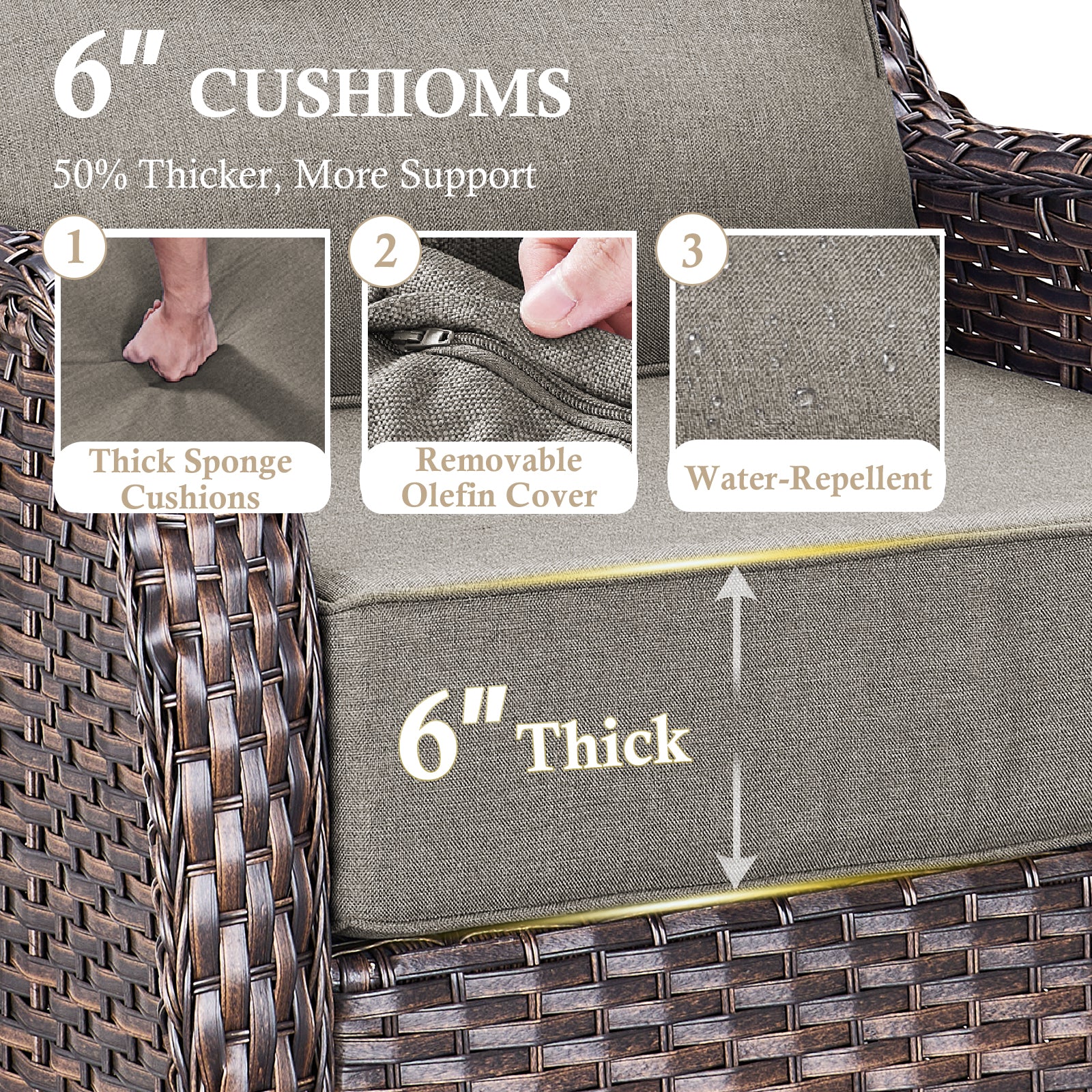 - 6" Thick Cushions: Plush comfort for long-lasting relaxation