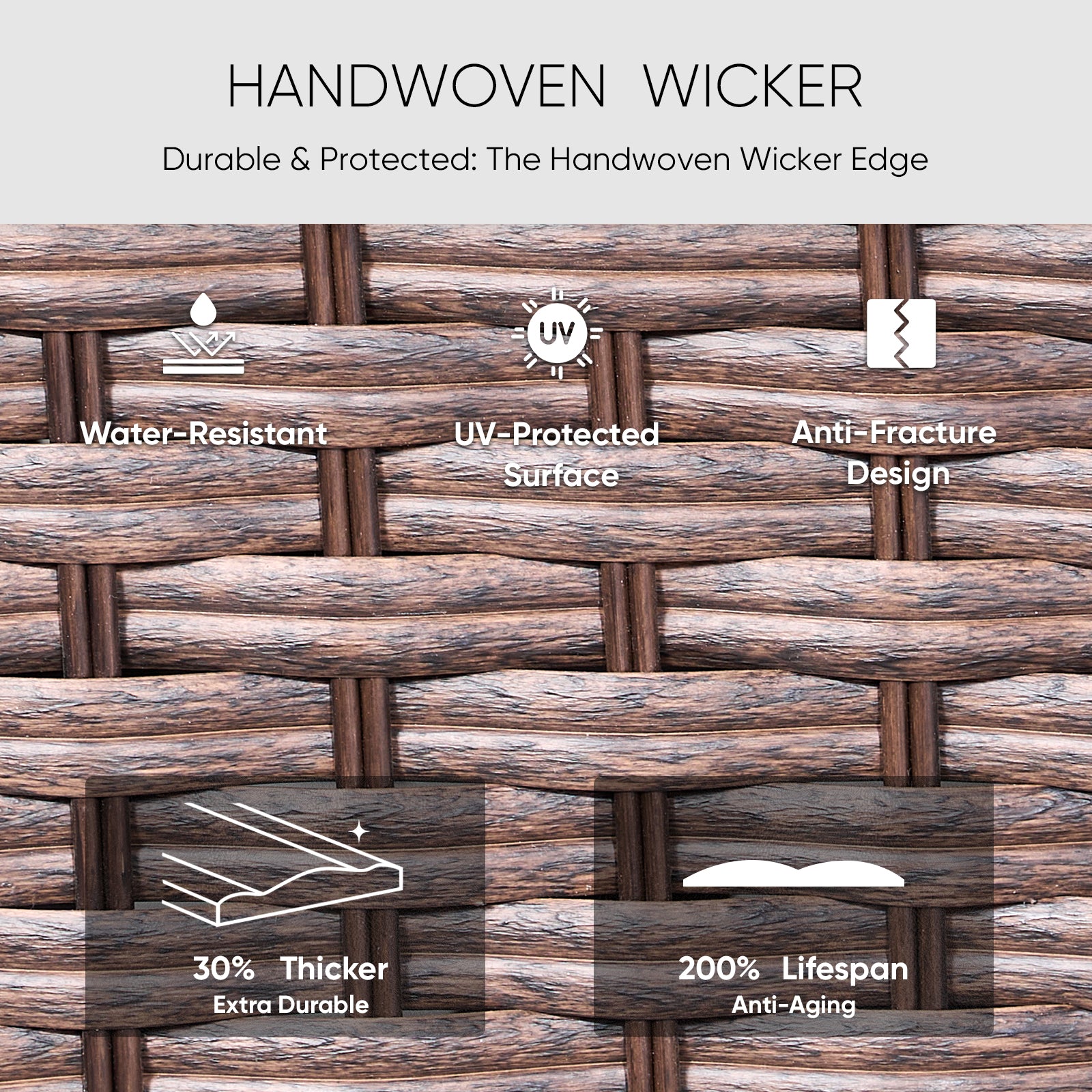 Constructed with weather-resistant dark grey PE rattan and a reinforced steel frame, this patio furniture set is designed for long-lasting outdoor use in different climates. The upgraded 2-tier tempered glass table offers a stable surface for drinks, food, or décor.