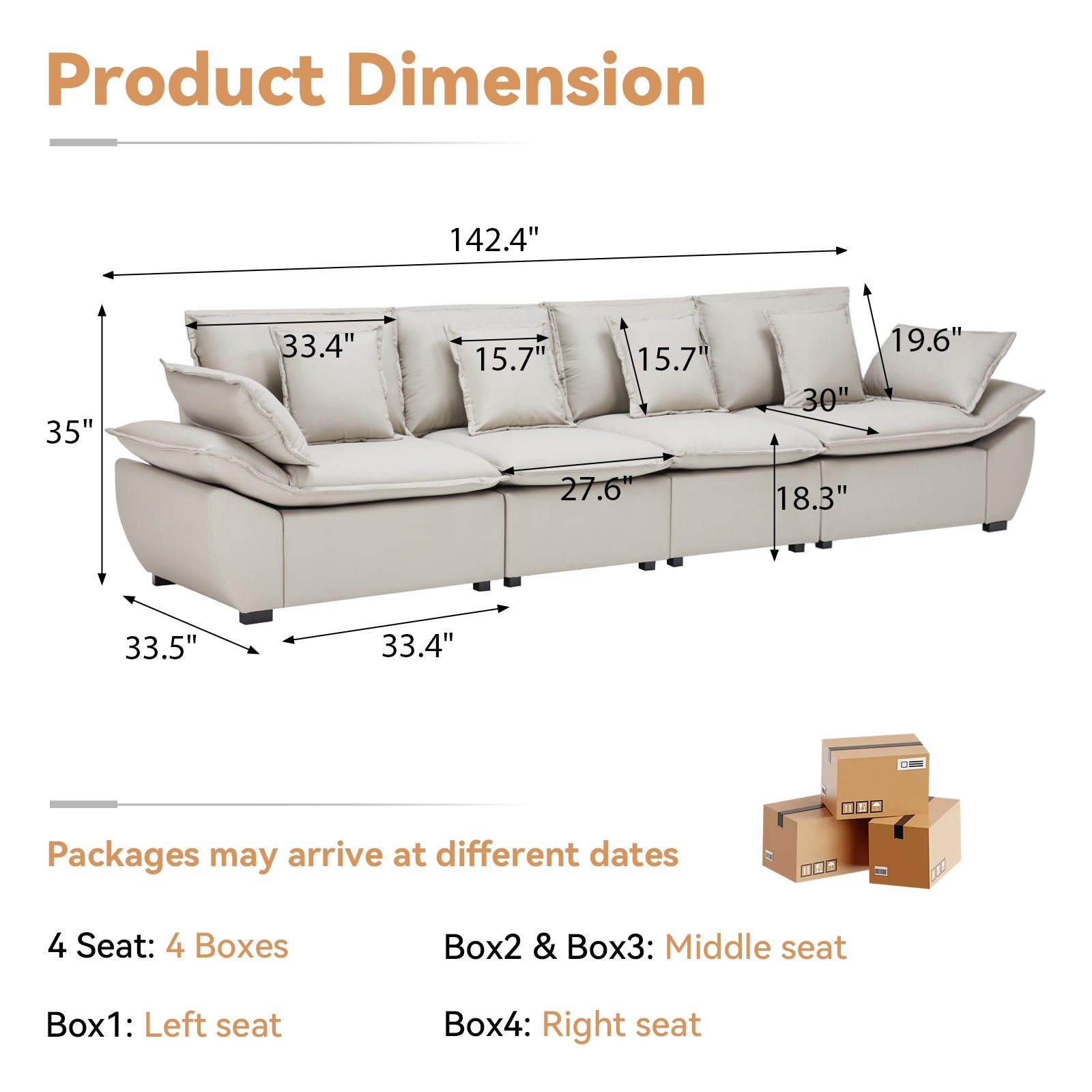 Save 50% - 4-Seater Modular Sectional Sofa with Storage Ottomans, Reversible Deep Seat Sleeper Couch with Removable Backrest & Throw Pillows