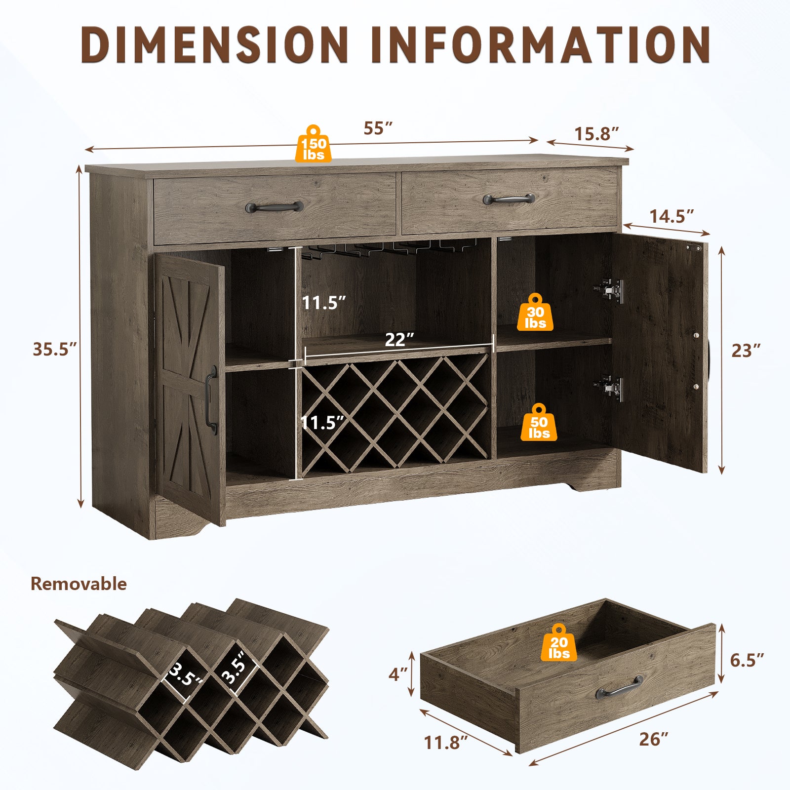 Save 50% - 55" Farmhouse Coffee Bar Cabinet with Hutch, Wine Rack Storage & Drawer, Kitchen Buffet Cabinet for Dining Room, Living Room