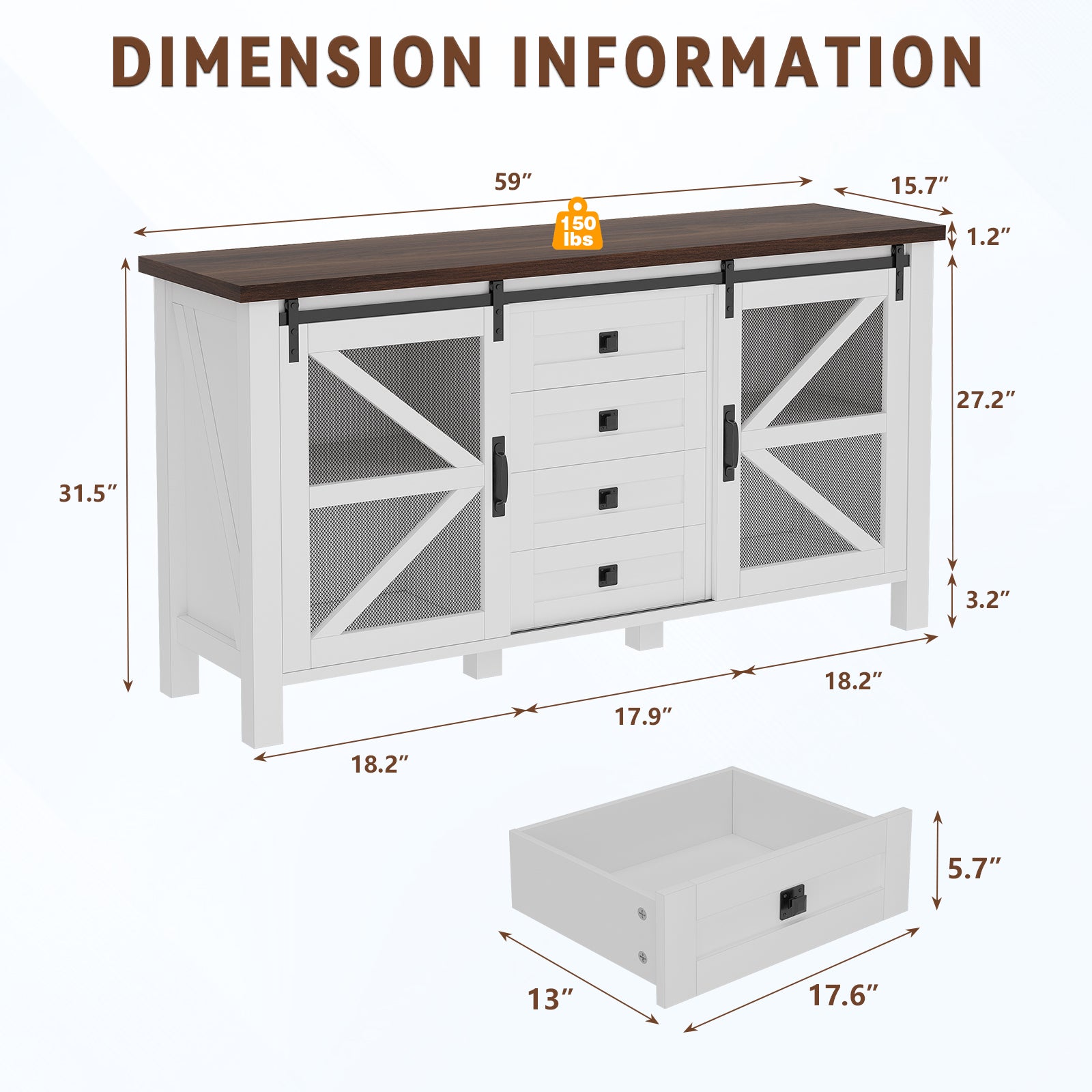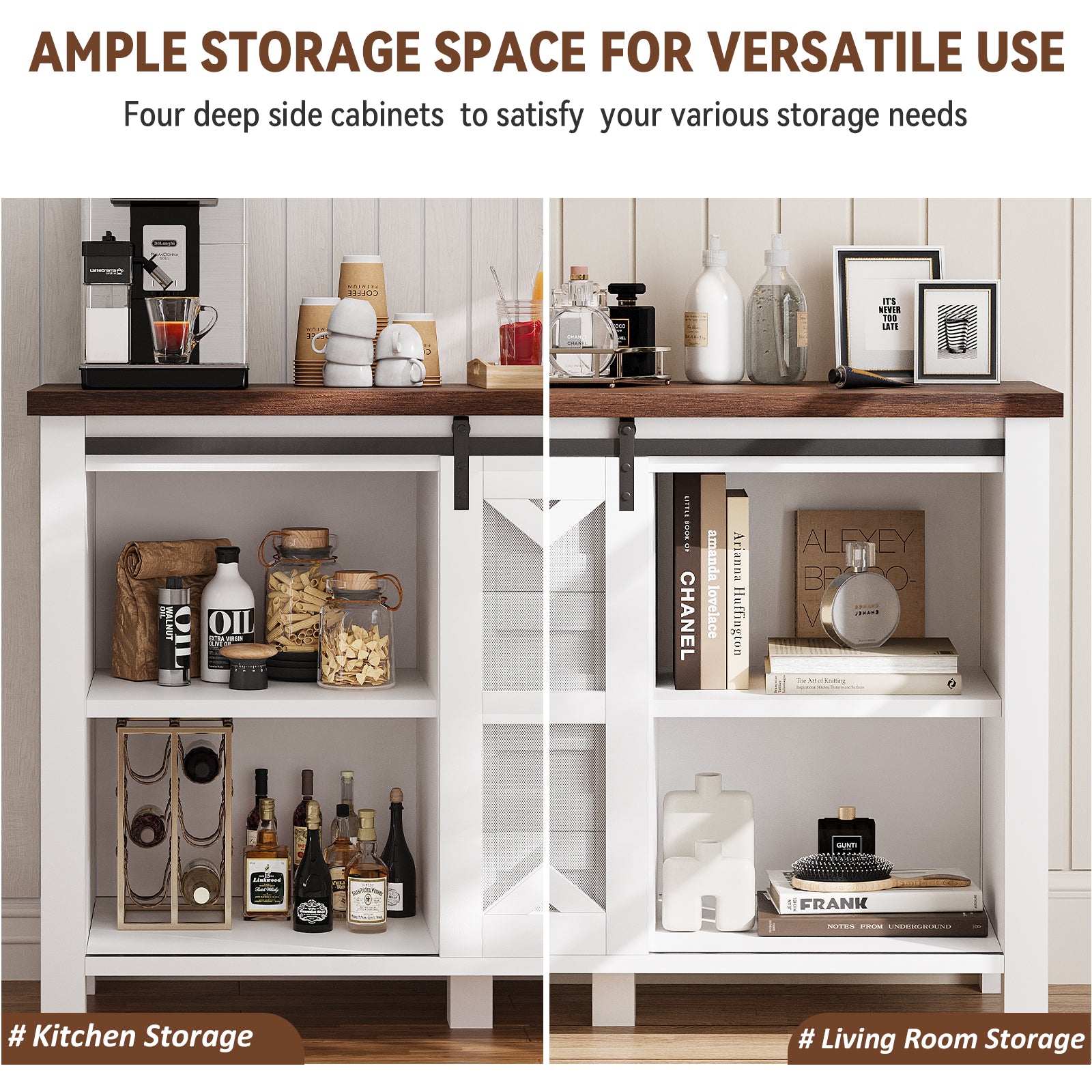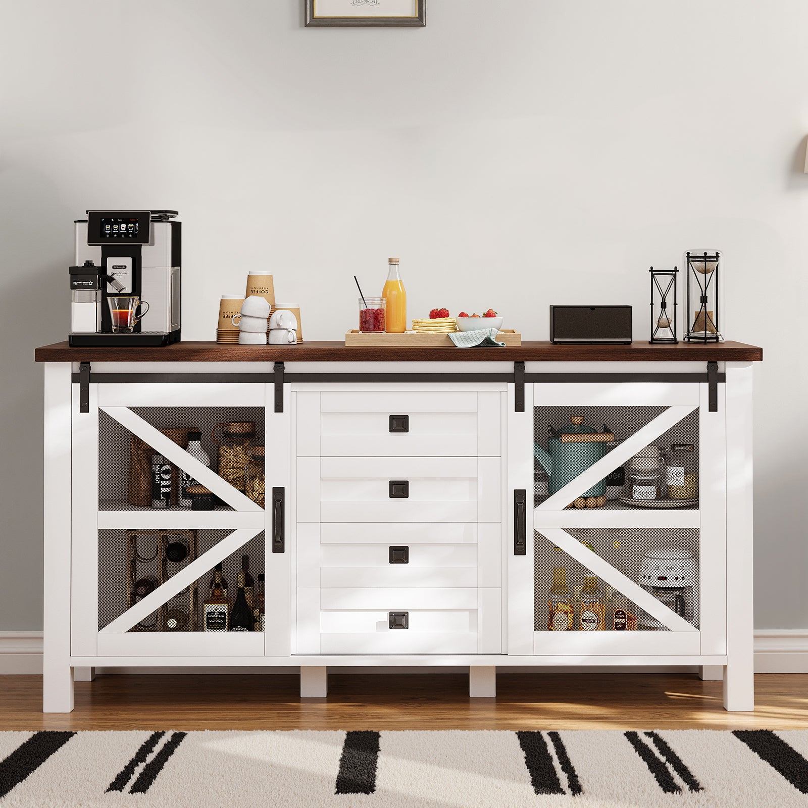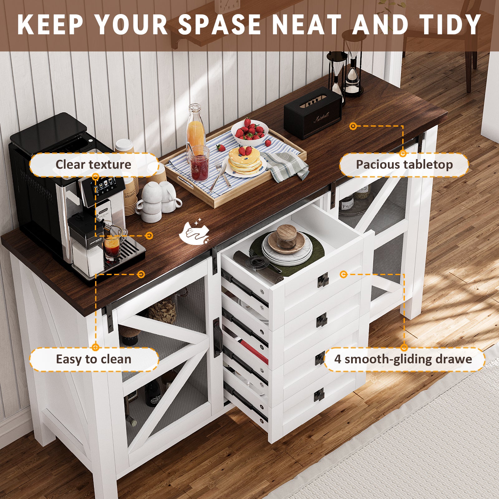 Save 50% - 60" Farmhouse Coffee Bar Sideboard with Sliding Barn Doors, 4-Drawer Buffet Storage Cabinet for Kitchen and Living Room